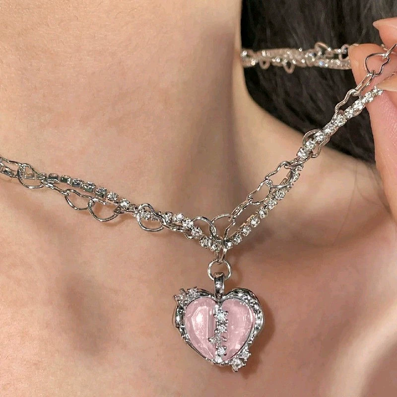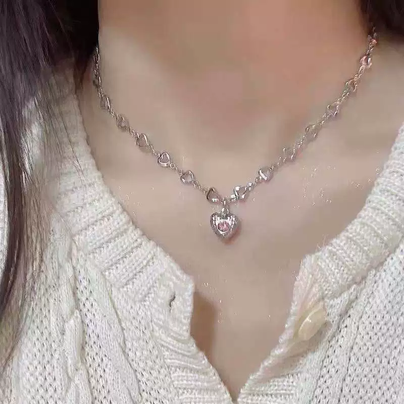 | nameOriginal | Pink heart pendant necklace pink heart pendant clavicle chain women's love necklace women |