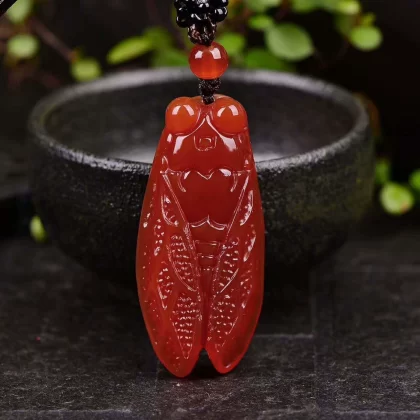 | nameOriginal | Pink hibiscus jade natural agate cicada pendant eight swords jade cicada blockbuster men and women necklace pendant one leaf cicada crown |