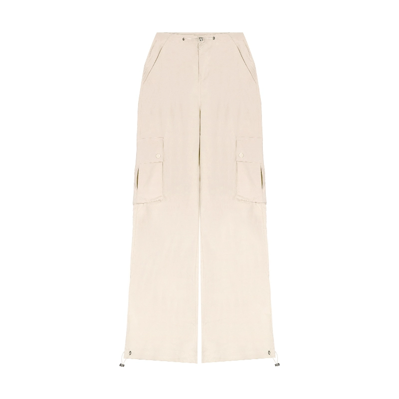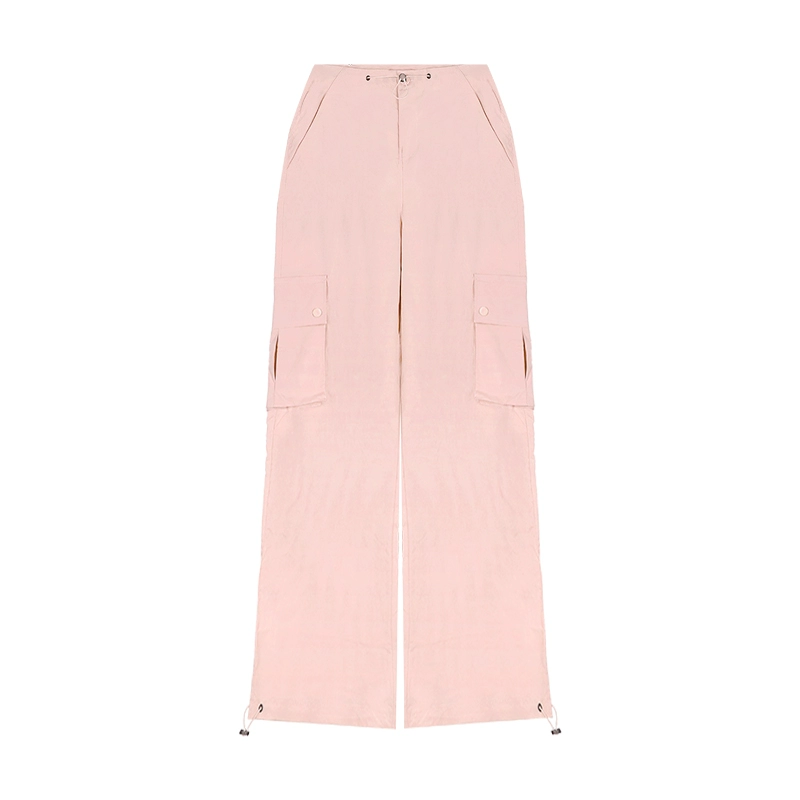 Pink high-waisted spring loose floor-length pants with drawstring