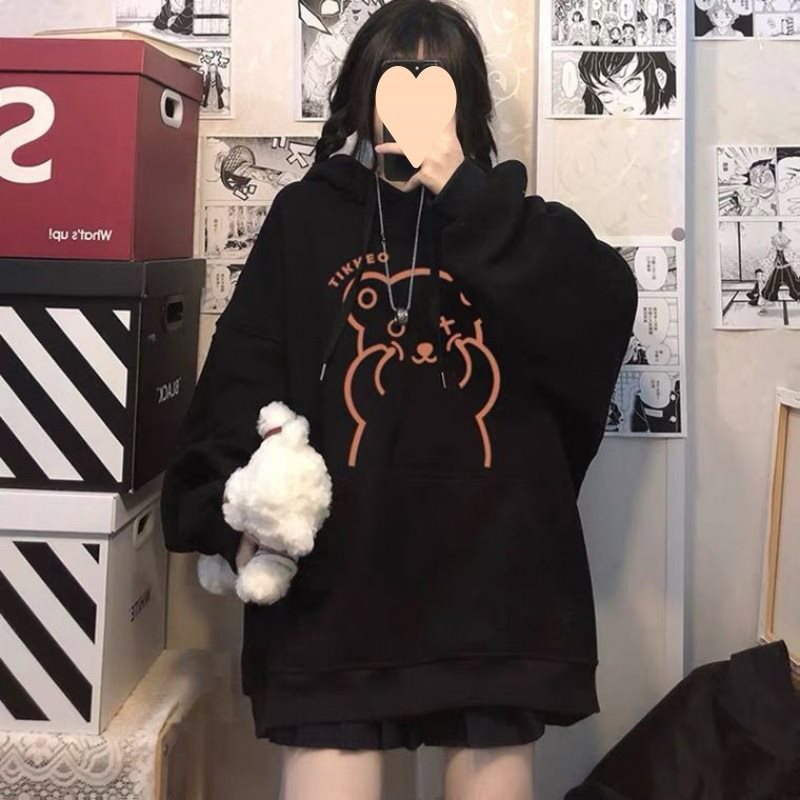 Pink hooded sweater for women 2023 new autumn and winter loose lazy style plus velvet coat top