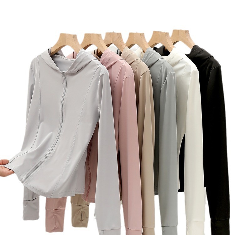 Pink Ice Silk Sunscreen Women’s Summer Thin 2024 New Anti-UV Slim Yoga Clothes Cardigan Top