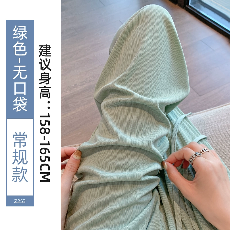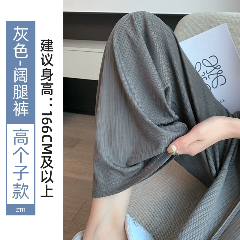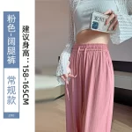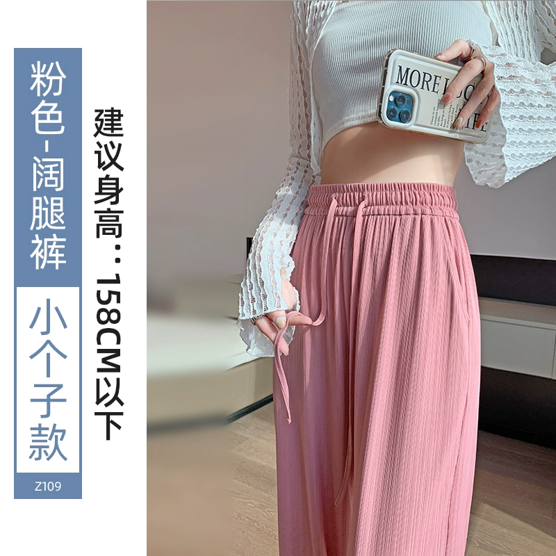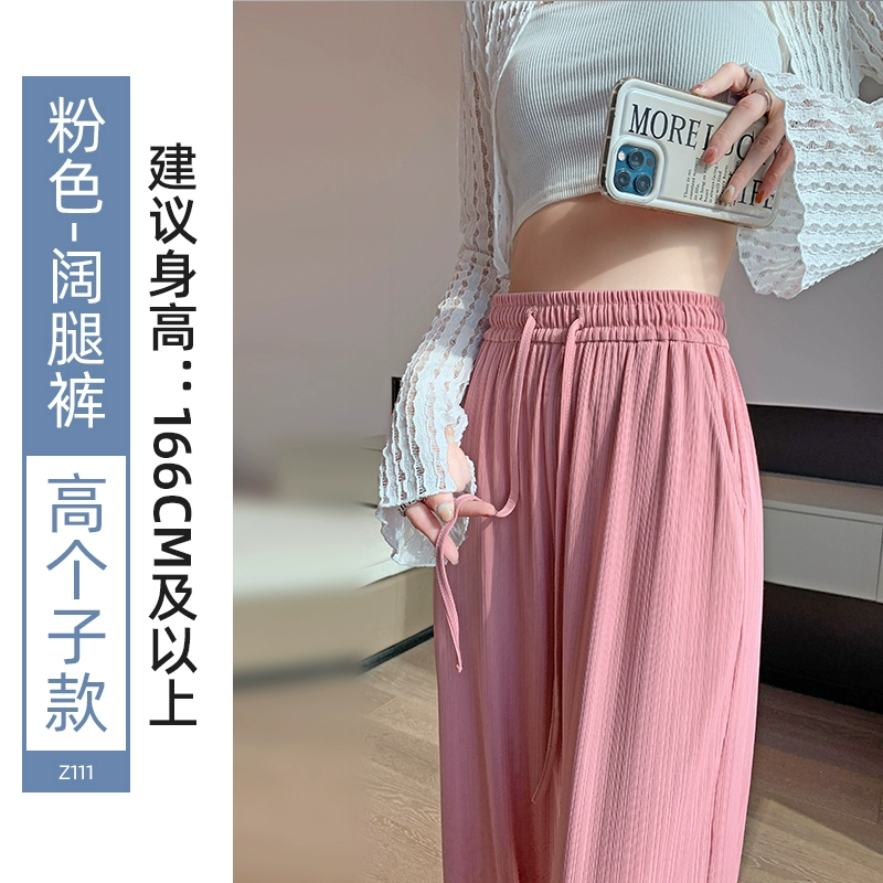 | nameOriginal | Pink ice silk thin high waist casual cool wide leg pants |