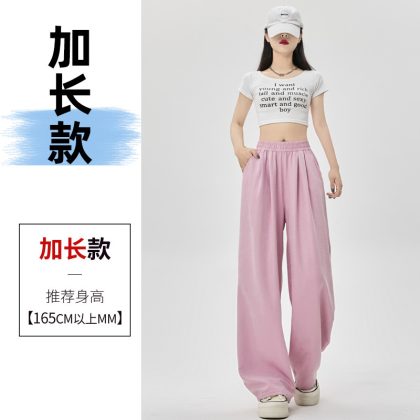 nameOriginal | Pink Ice Silk Wide Leg Pants Women's Summer High Waist Dape Loose Casual Paper Lazy Milk Pants Yamamoto Pants |
