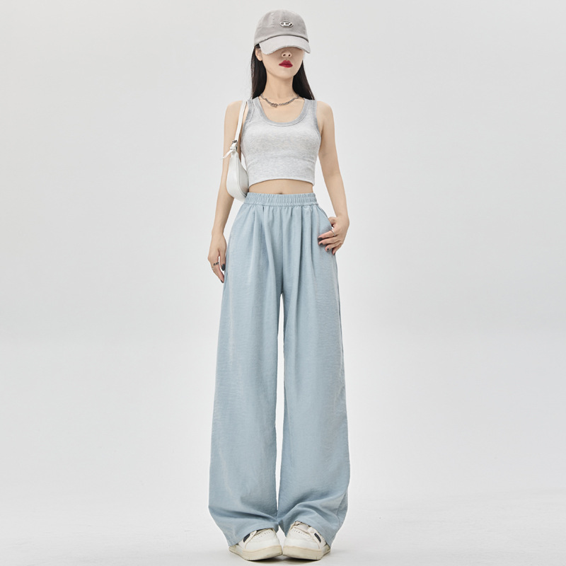 Pink Ice Silk Wide Leg Pants Women's Summer High Waist Dape Loose Casual Paper Lazy Milk Pants Yamamoto Pants
