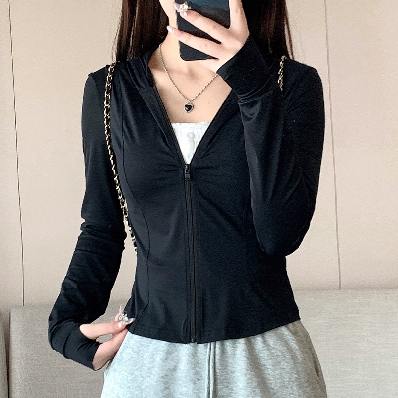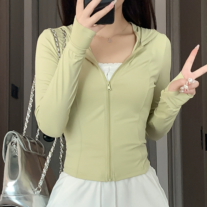 Pink ice silk women’s tight short jacket sun protection clothing