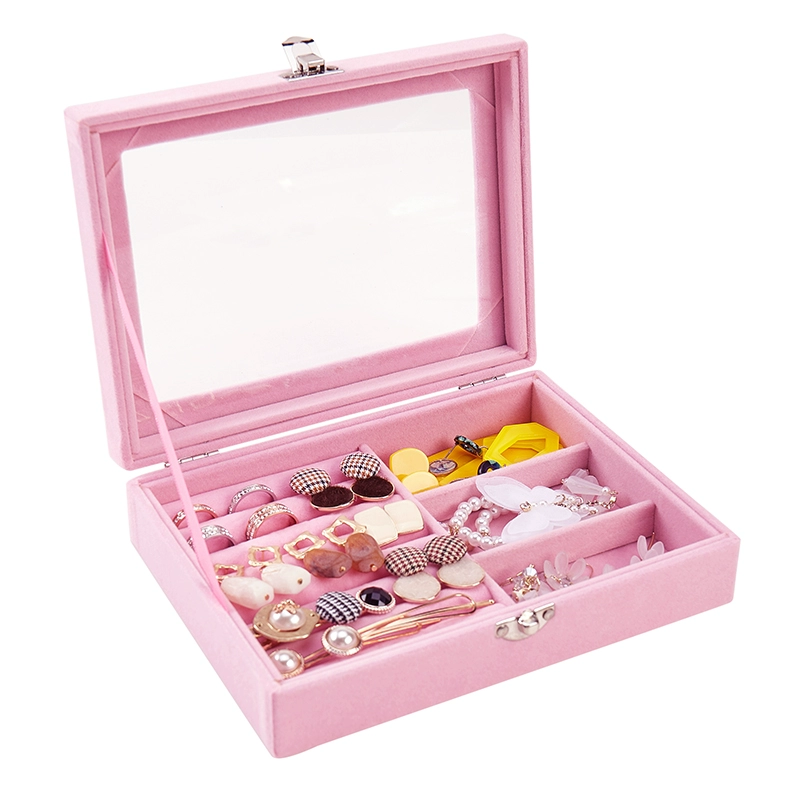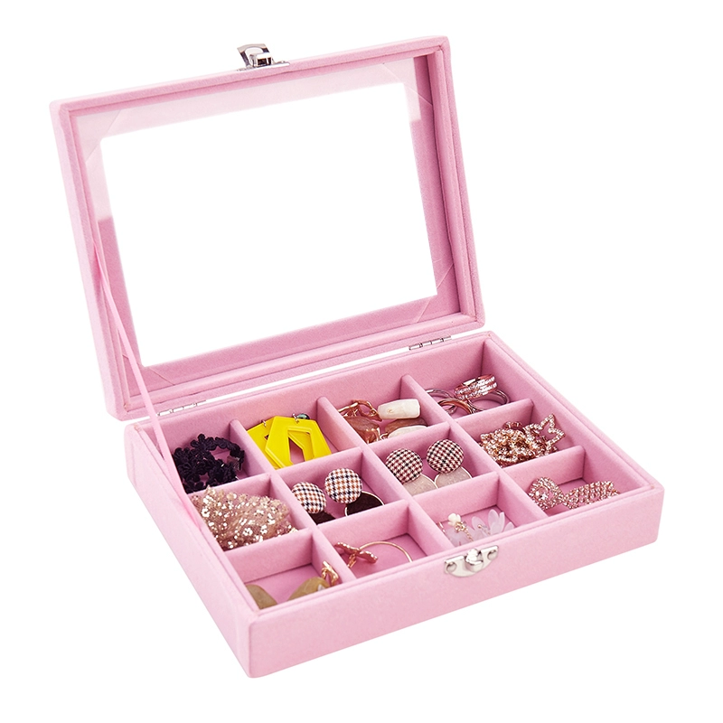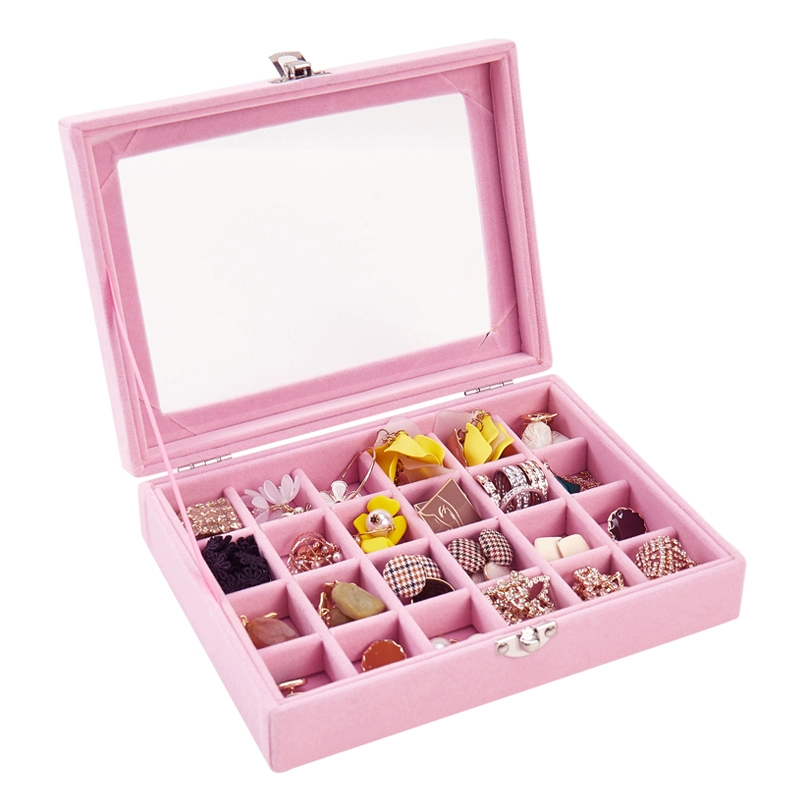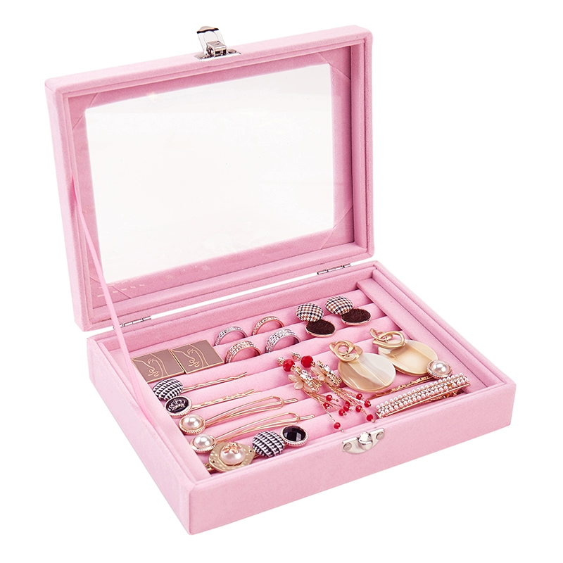 | nameOriginal | Pink jewelry box gray flocked velvet box earrings earrings jewelry display stand tray jewelry storage |