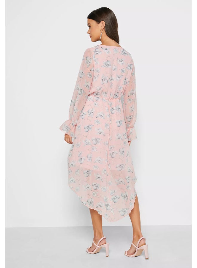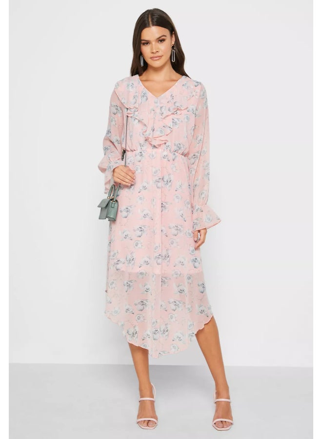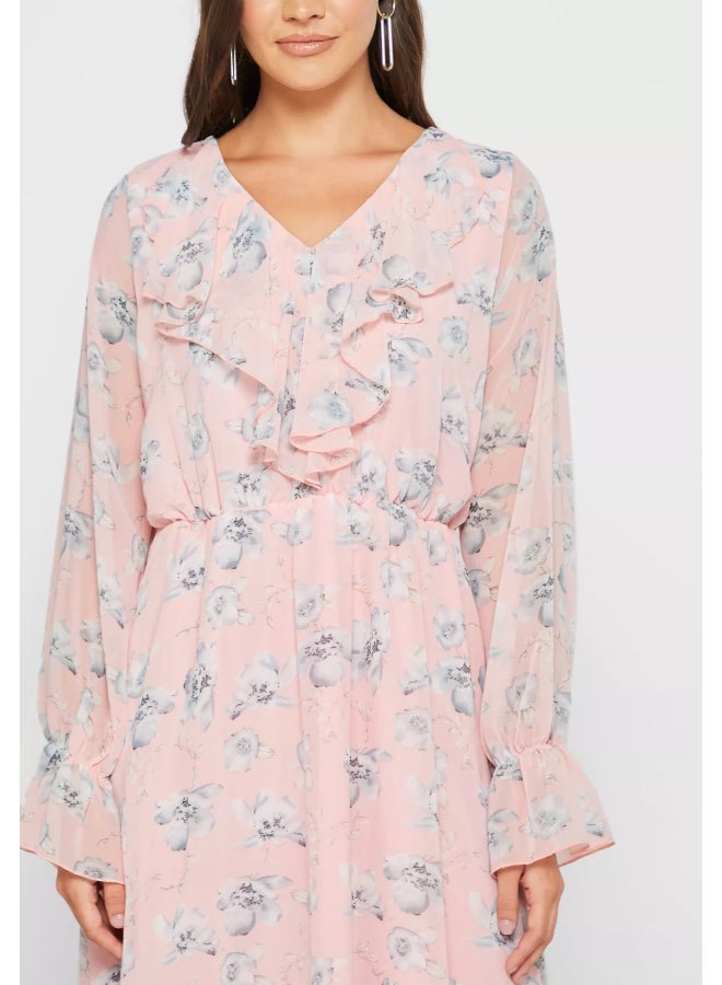 | nameOriginal | Ruffle Trimmed V-Neck Long Sleeve Knee Length Dress Pink |