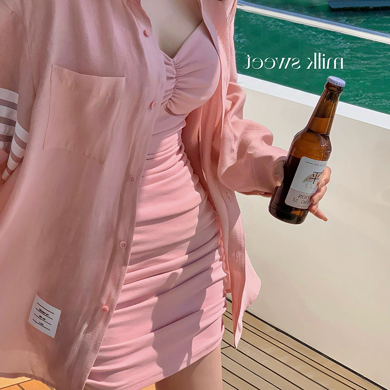 | nameOriginal | Pink long-sleeved loose chiffon cardigan sun protection clothing |