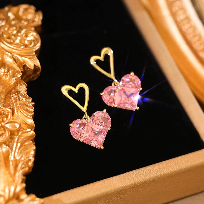 | nameOriginal | Pink love zircon earrings, design, elegant earrings, sweet and cute French ear clips, no pierced earrings for women |