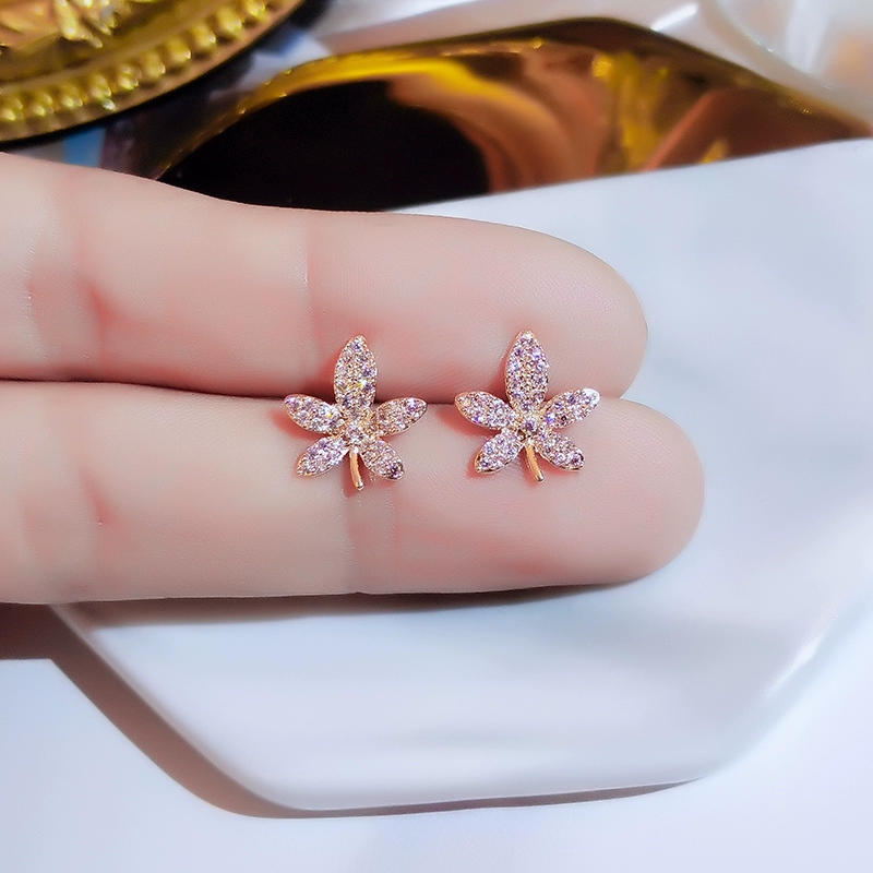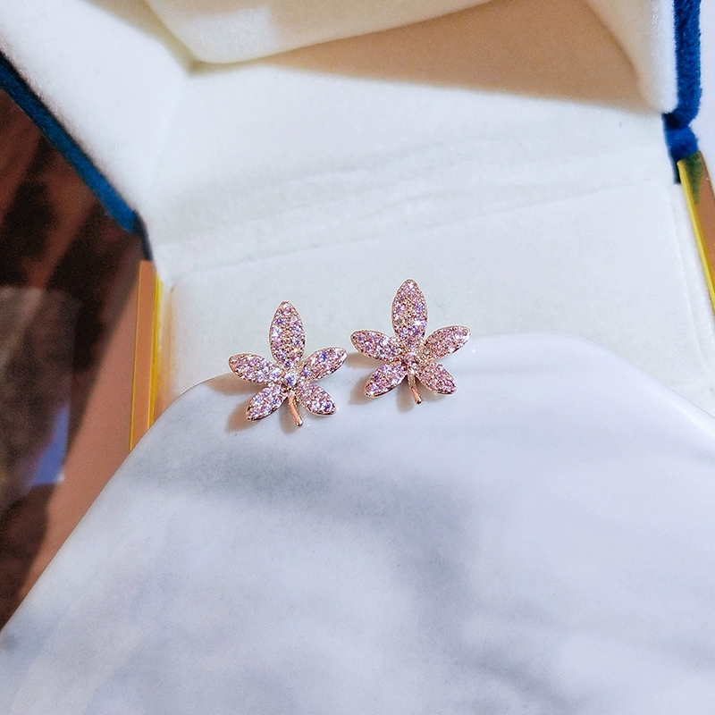 | nameOriginal | Pink Maple Leaf Earrings Women's Silver Needle Simple Cold Style Ear Clip No Piercing High-end Earrings 2022 New Trend |