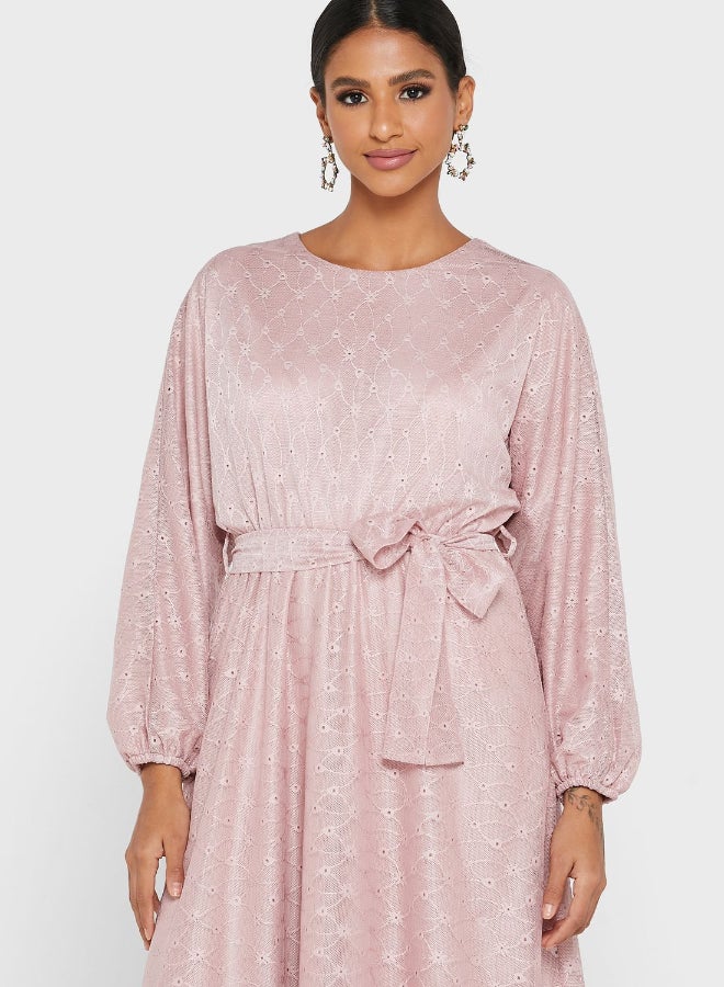| nameOriginal | Waist Belted Puff Sleeve Maxi Dress Pink |