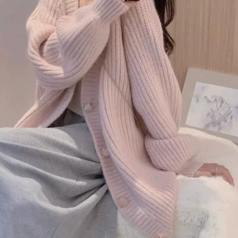 | nameOriginal | Pink mid-length loose soft waxy outer knitted cardigan |