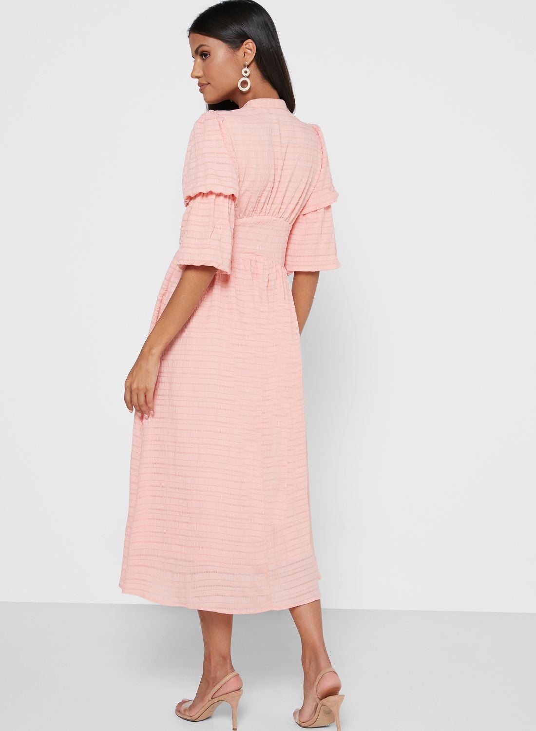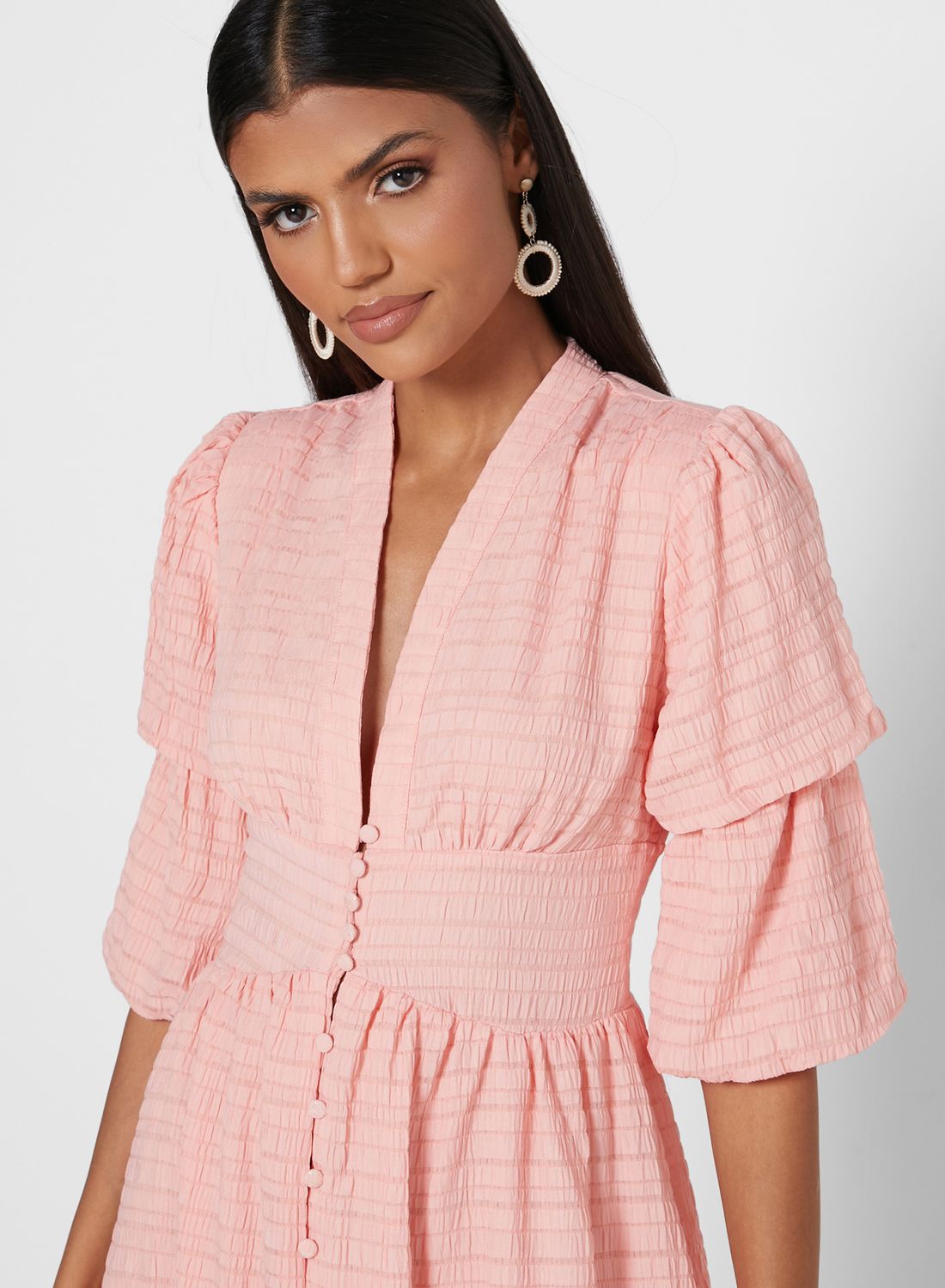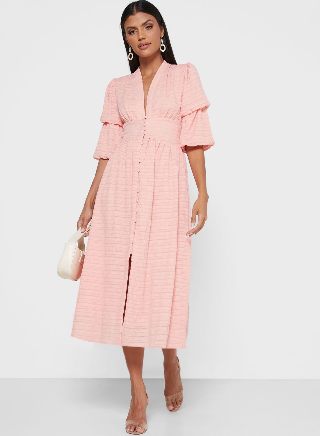 | nameOriginal | Solid Pattern Puff Sleeve Midi Dress Pink |