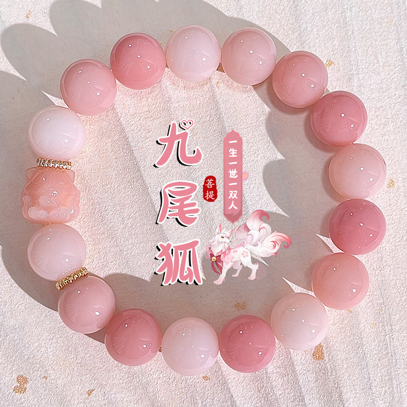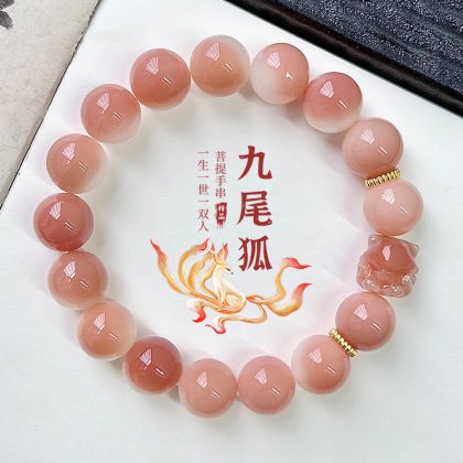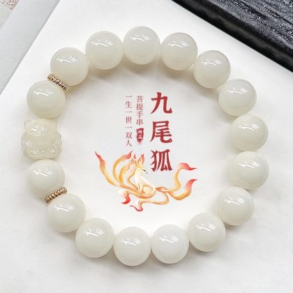 | nameOriginal | Pink Nine-tailed Fox White Jade Bodhi Root Bracelet Genuine Student Plate Playing Bodhi Zi Buddha Beads Lovers Literature Playing Bracelet Female |