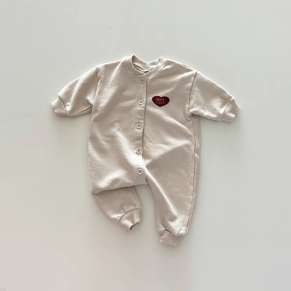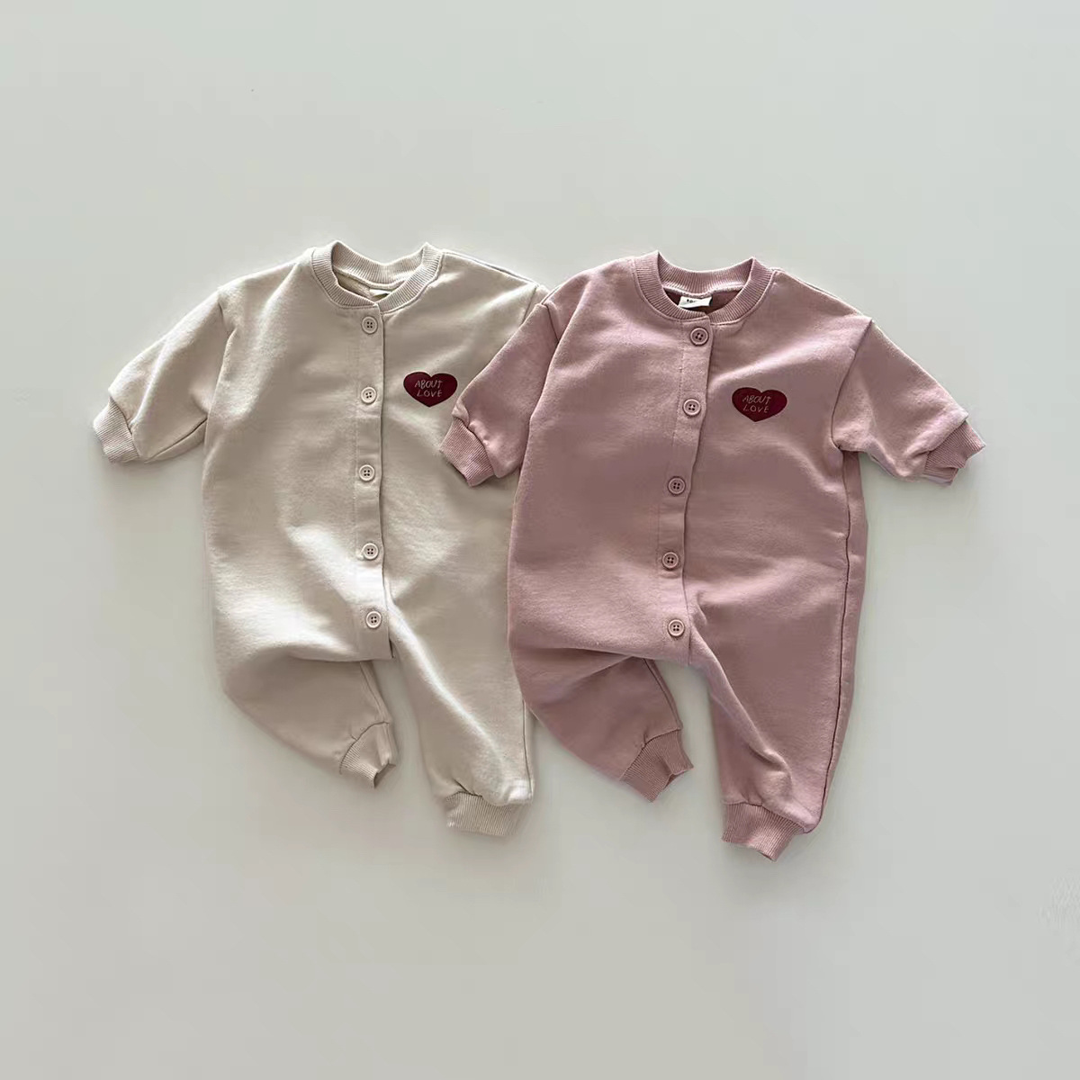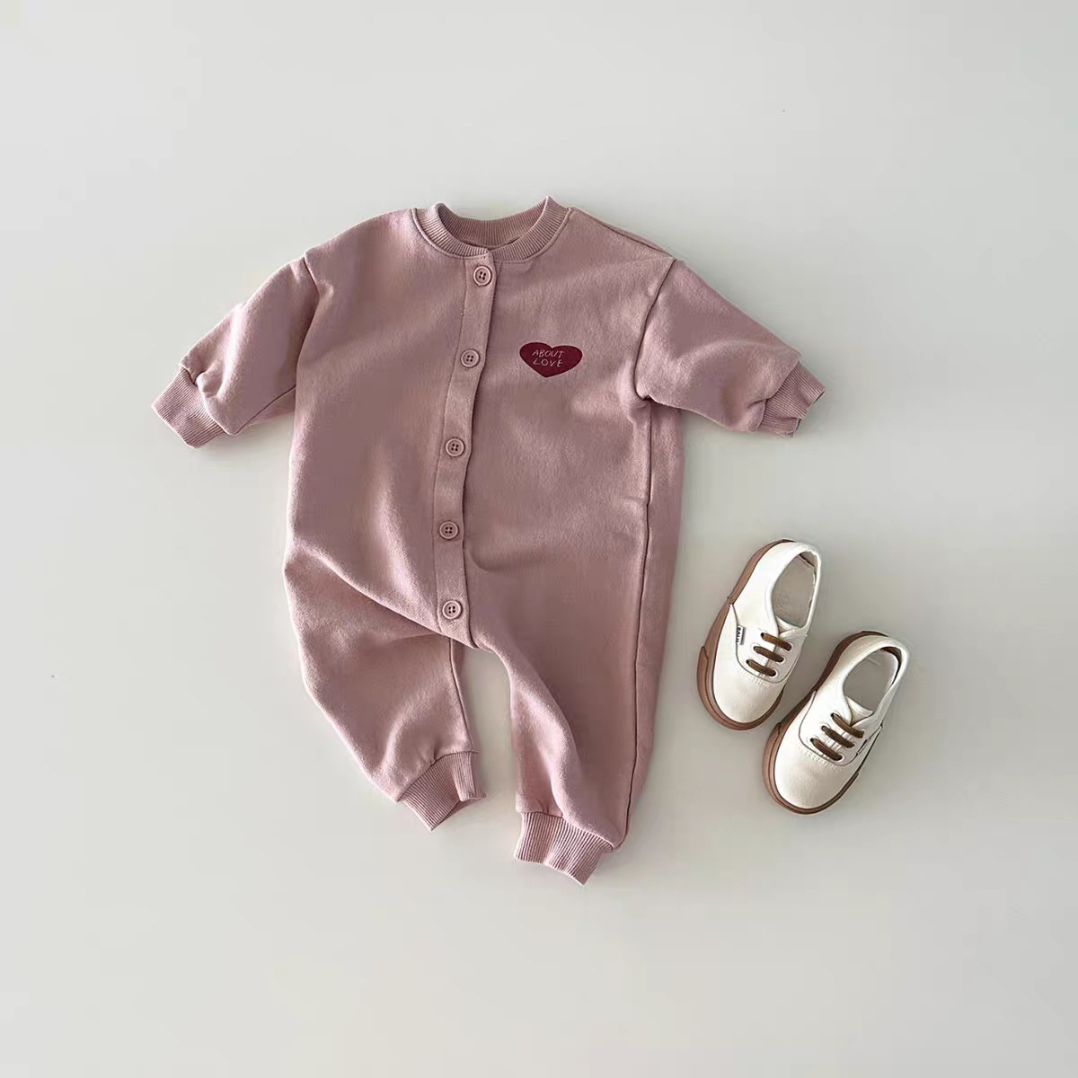 Pink One-piece Climbing All-match All-match Long Love Solid Color Fashion Ha-clothes Spring and Autumn Korean Cardigan Baby