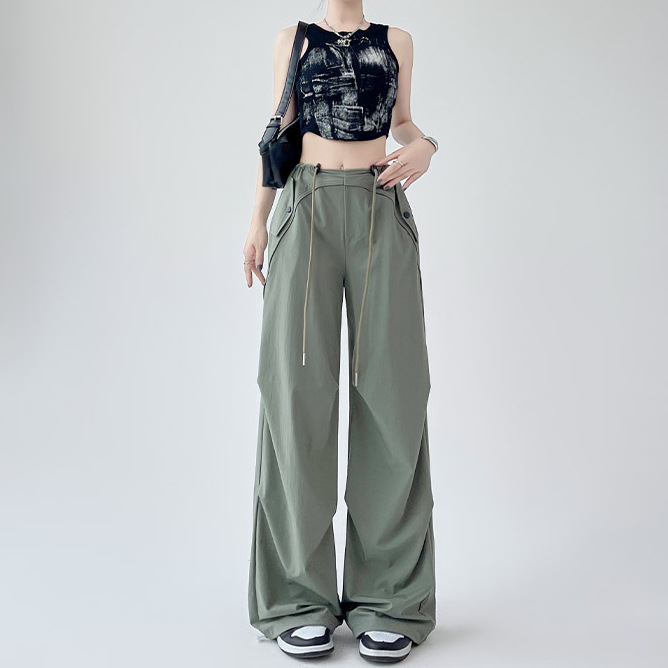 | nameOriginal | Pink Overalls Women's Quick-drying Summer Thin 2024 New Low-waisted Street Loose Straight Drawstring Casual Pants |