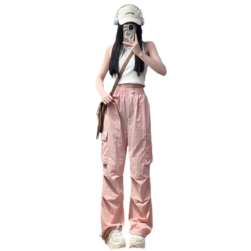 | nameOriginal | Pink overalls women's spring and autumn 2024 new high waist wide leg pants pants casual wind long pants slim |