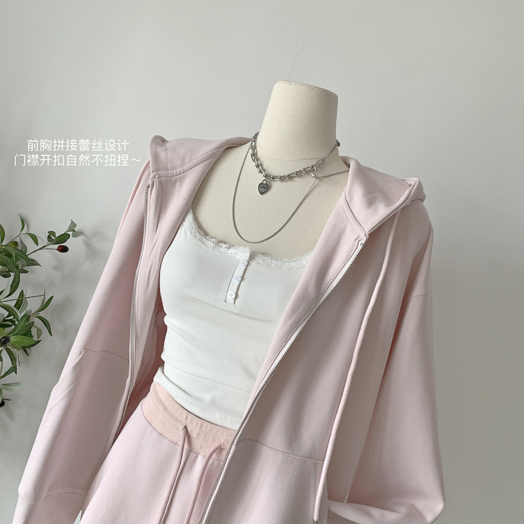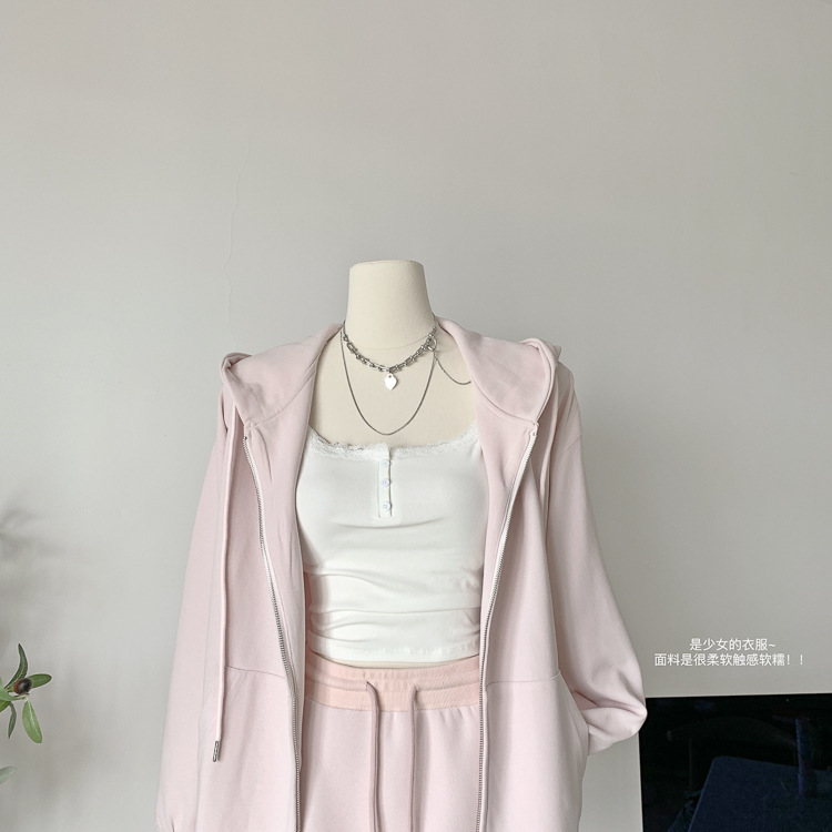[pink peach suit ~] hooded sweater coat women's early autumn new lazy wind pink top