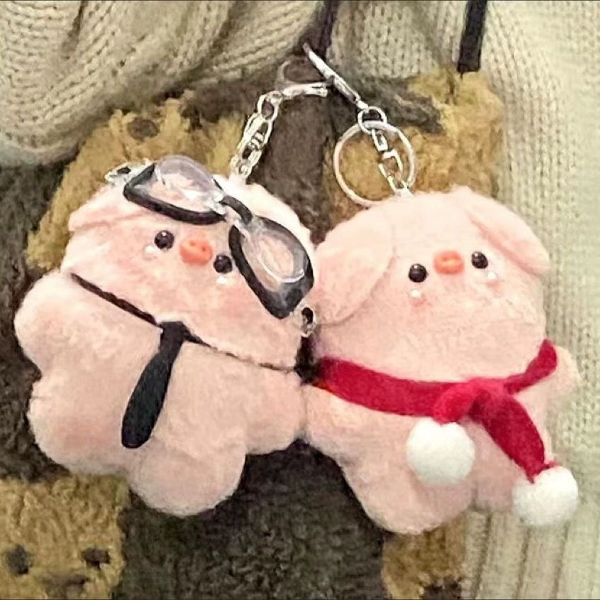 Pink Piggy Schoolbag Girly Heart Net Accessories Plush