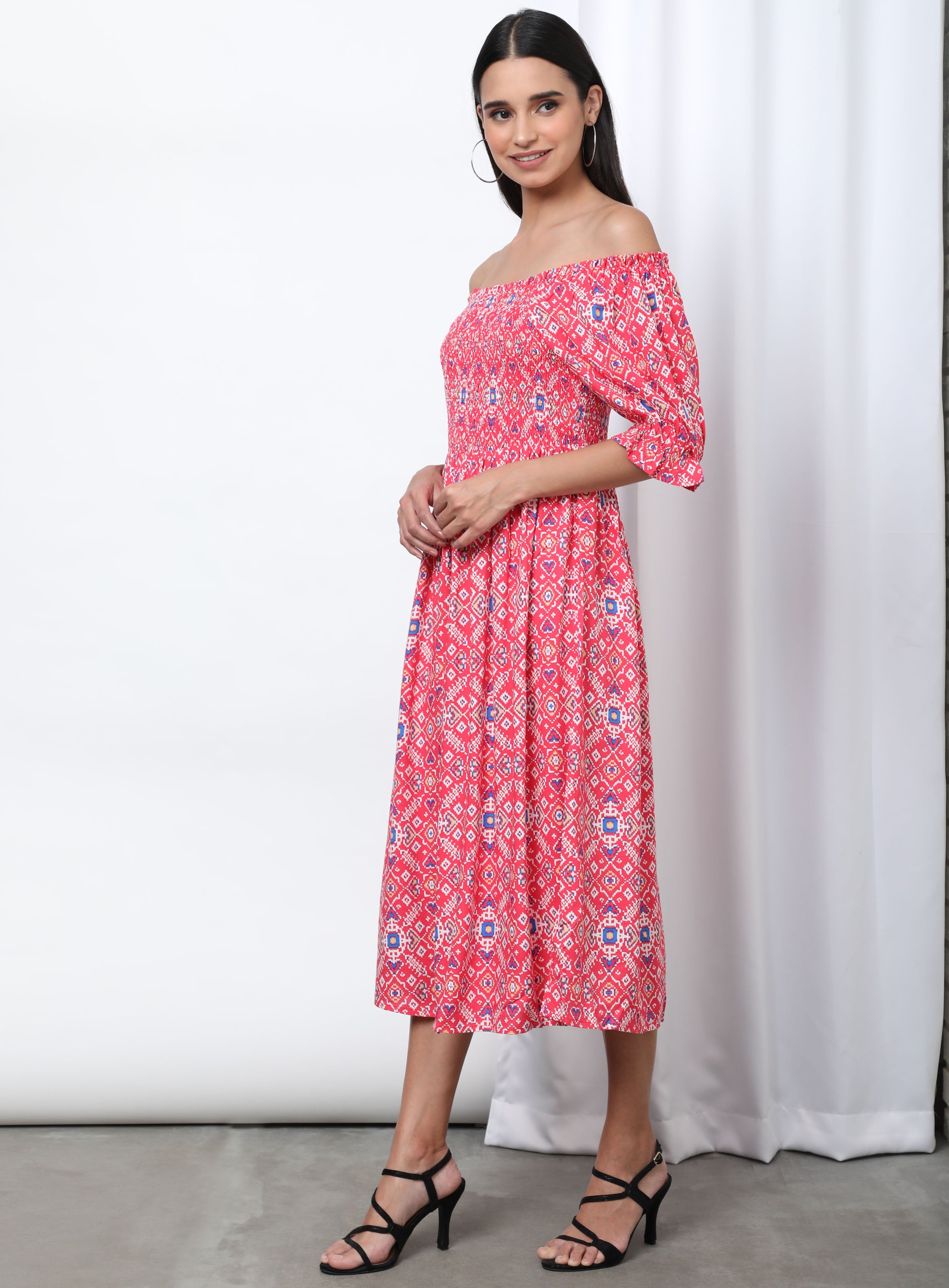 Introducing our Round Neck Printed Dress in Pink Aop, the perfect addition to your wardrobe for any occasion. This dress features a flattering round neckline and a beautiful pink all-over print that is sure to turn heads. The lightweight and breathable fabric make it comfortable to wear all day long, while the relaxed fit allows for easy movement. The dress falls just above the knee, making it a versatile piece that can be dressed up or down. Pair it with your favorite sandals for a casual daytime look or dress it up with heels and statement jewelry for a night out. Don’t miss out on this must-have dress that is both stylish and comfortable.
