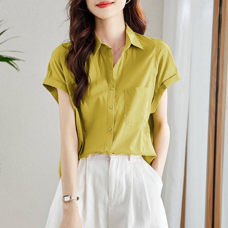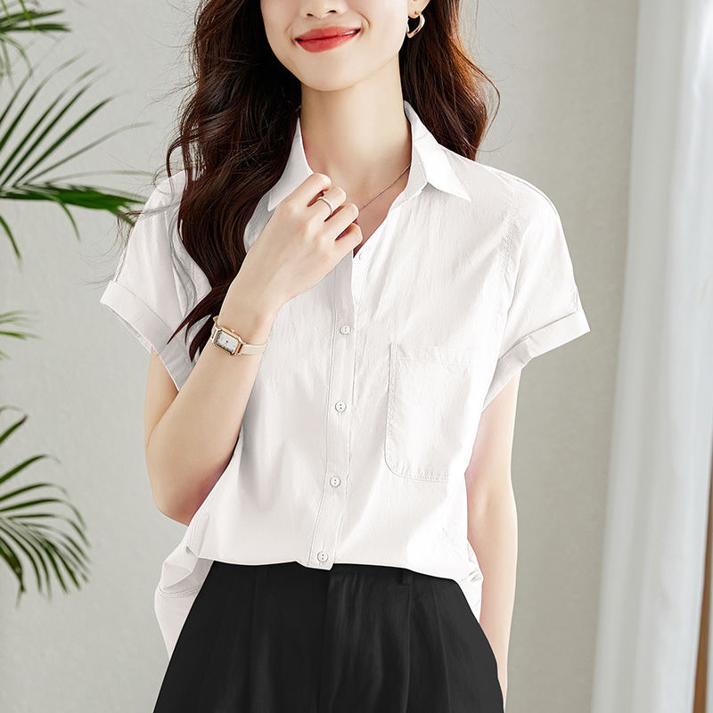 | nameOriginal | Pink purple shirt women's short sleeve 2024 Summer new Korean style fashionable younger shirt cotton casual chic shirt |