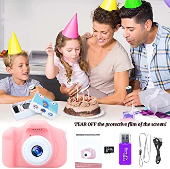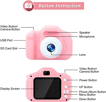 | descriptionOriginal | Qniceone Digital Kids Camera – Best Gift for Kids This digital childrens camera can exert children’s imagination and cultivate children's photography hobby. It is a good choice and perfect gift for kids'birthday, holiday and Christmas gifts aged 3~10. HD KIds Camera Children can practice shooting beautiful scenes outdoors or indoors, effectively capturing distant scenery. Suitable for kids to learn photography.Kids can use Qniceone kids camera record the happy moment with family or friends.Perfect birthday, holiday and Christmas gifts for children. USB Charging & Data Transfer This children's digital camera can be charged via the included USB cable, and it can also transfer all files to a PC or download and delete photos when connected to a computer by USB cable or card reader . PS: deleting photos can also be done on the camera itself. Rechargeable camera with USB charging cable Package include: 1 x kids Camera 1 x 32GB memory card in the camera 1 x lanyard for tying on the camera 1 x USB charging cable 1 x User Manual Shockproof Design This Kids Digital Camera use safe material, non-toxic material, Protective shockproof Shell, durable and safe for kids, provide them a comfortable way to take photo or record video with the child camera. Use It Confident . Best Gift for Kids Kids can use Qniceone kids video camera record the happy moment with family or friends.Perfect birthday, holiday gifts for children. Easy to Carry The toys for 5 year old boys come with durable lanyard, convenient and safe for kids to carry it everywhere. Never worry kids will lost it or make it drop off. Warm Tips: Mini Size: 2.4*3.3 inch size of camera, 2 inch screen, suitable for children aged 2-10, easy to carry. Please compare the size and confirm it fit before purchasing. If It Freezes: Due to the frequent operation or random pressing of the child, the camera may freeze. Please insert the pin into the small hole next to the usb interface to restart the system and start it up and use it. Download Photos: You can directly connect a computer or tablet with a data cable to download photos(Do not remove the SD card from camera), or you can use a card reader to insert a memory card to connect. |