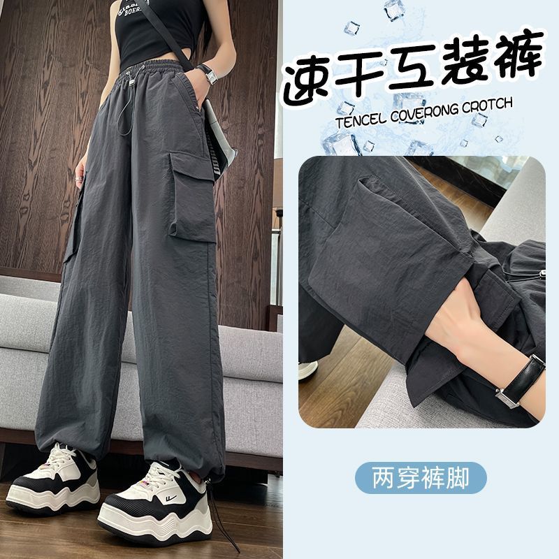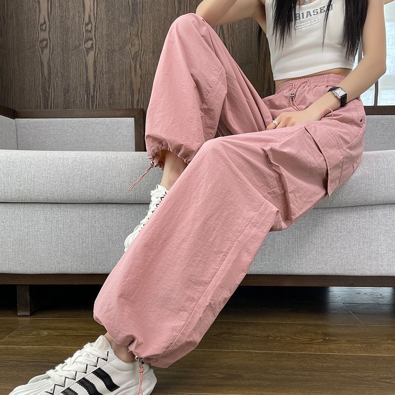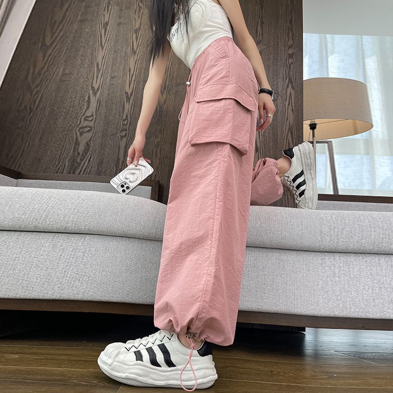 | nameOriginal | Pink Quick-drying Sports Cockwork Pants Women's Sweater Pants Summer Thin 2024 New High Waist American Cropped Wide-leg Pants |