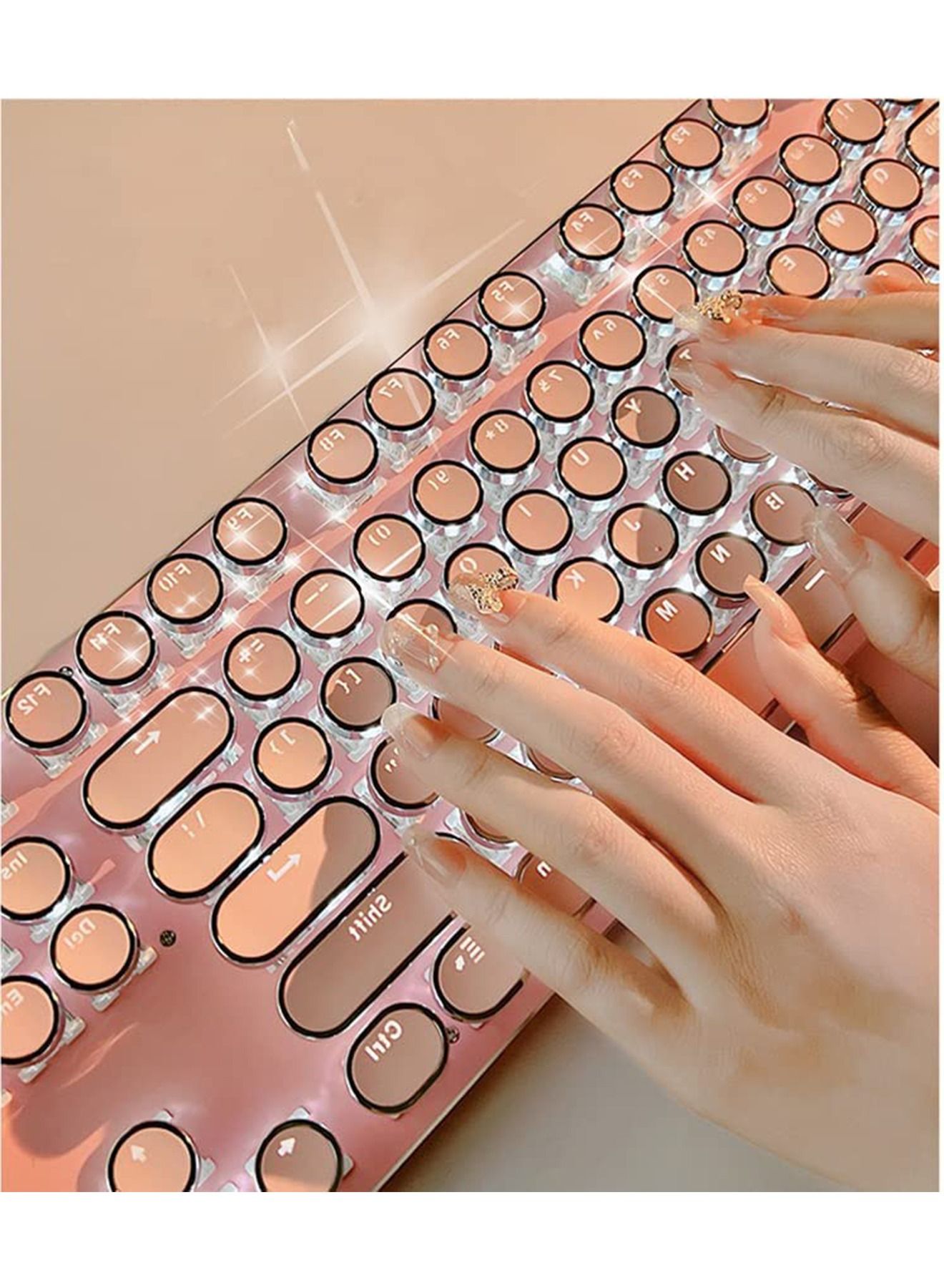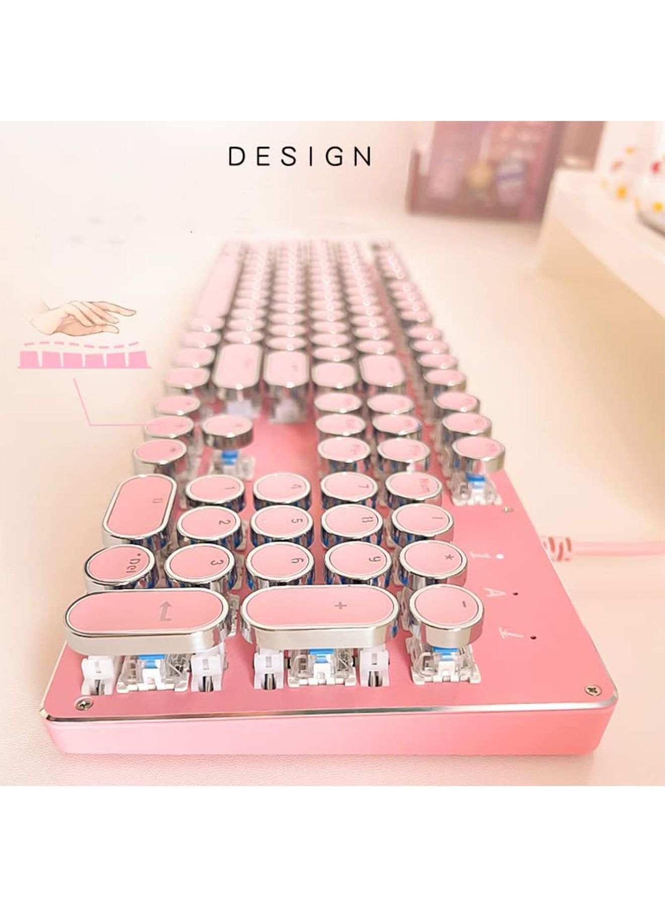 | nameOriginal | Gaming Wire Keyboard with Mouse set Retro Punk Typewriter-Style White Backlight USB Wired, for PC Laptop Desktop Computer for Game and Office Stylish Pink Mechanical Keyboard |