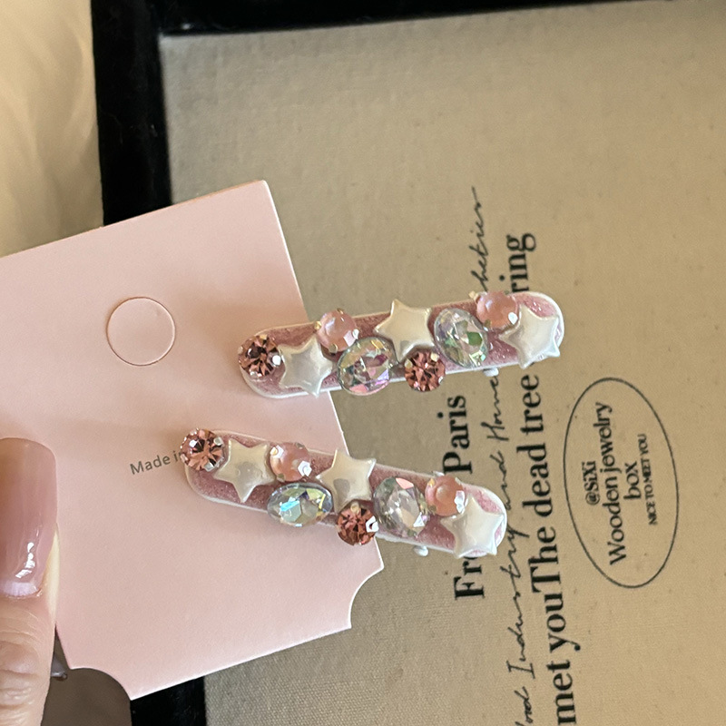 | nameOriginal | Pink rhinestone zircon hairpin grade bangs clip side clip broken hairpin clip headdress for women |