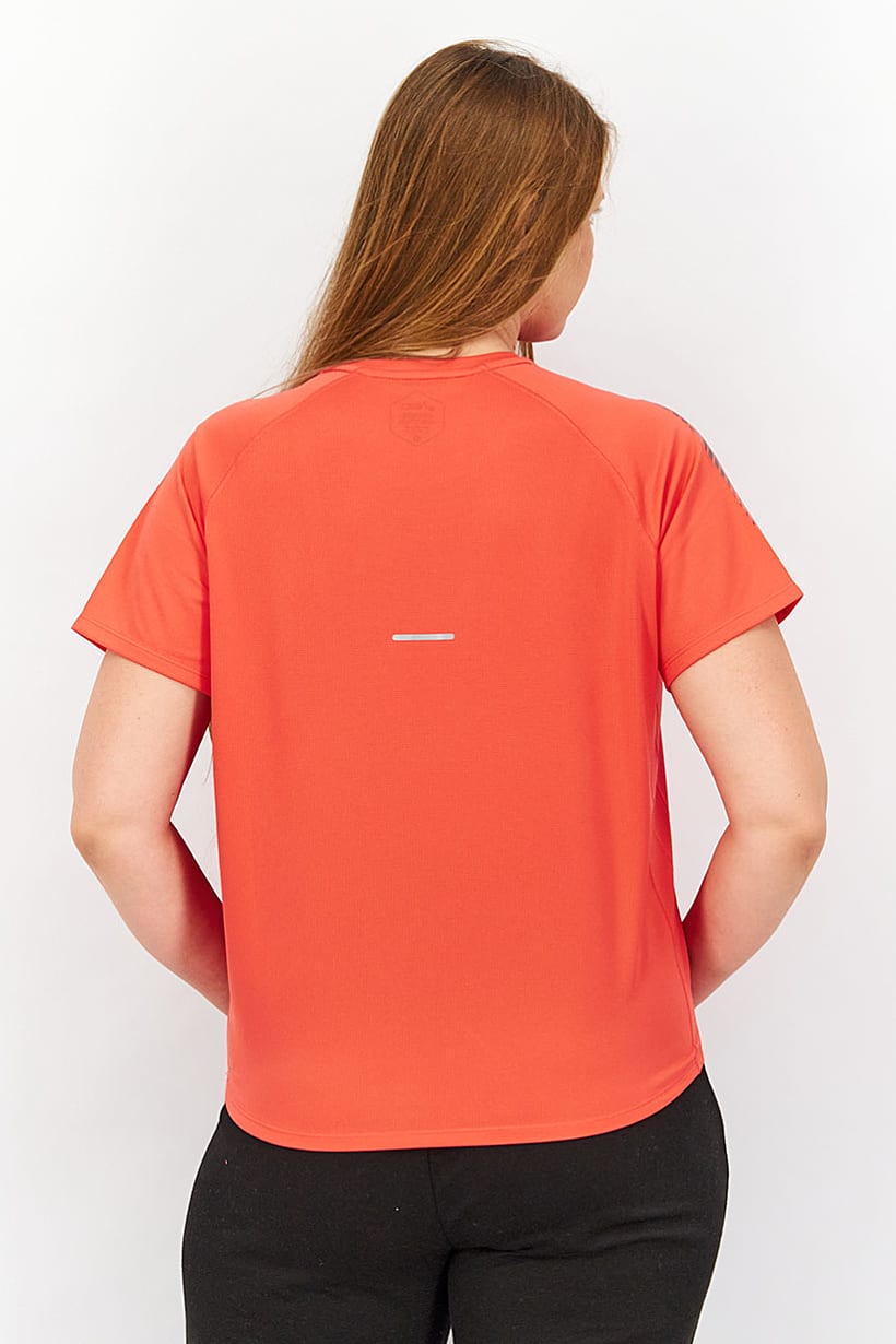 Bottom Hem : Straight, Care : Machine washable, Fit : Regular fit, Ideal For : Women, Size shown : International, Sleeve Length : Short Sleeve, Thickness : Light, Type of Sport : Running, Types of Hem : Straight hem, Types of Neckline & Collar : Crew neckline, Types of Sleeve : Short sleeve, Disclaimer : Product color may slightly vary due to photographic lighting sources or your monitor settings., Fabrics : 100% Polyester Fleece, Occasion : Sport, Pattern & Print : Brand Logo, Sportswear Type : T-Shirt, Types of Closures : Pullover, Color Family : Pink,