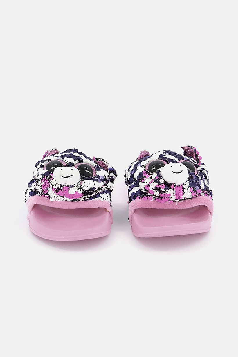 Girls Fashion, Girls Footwear, kids girls fashion sequins pool slides pink