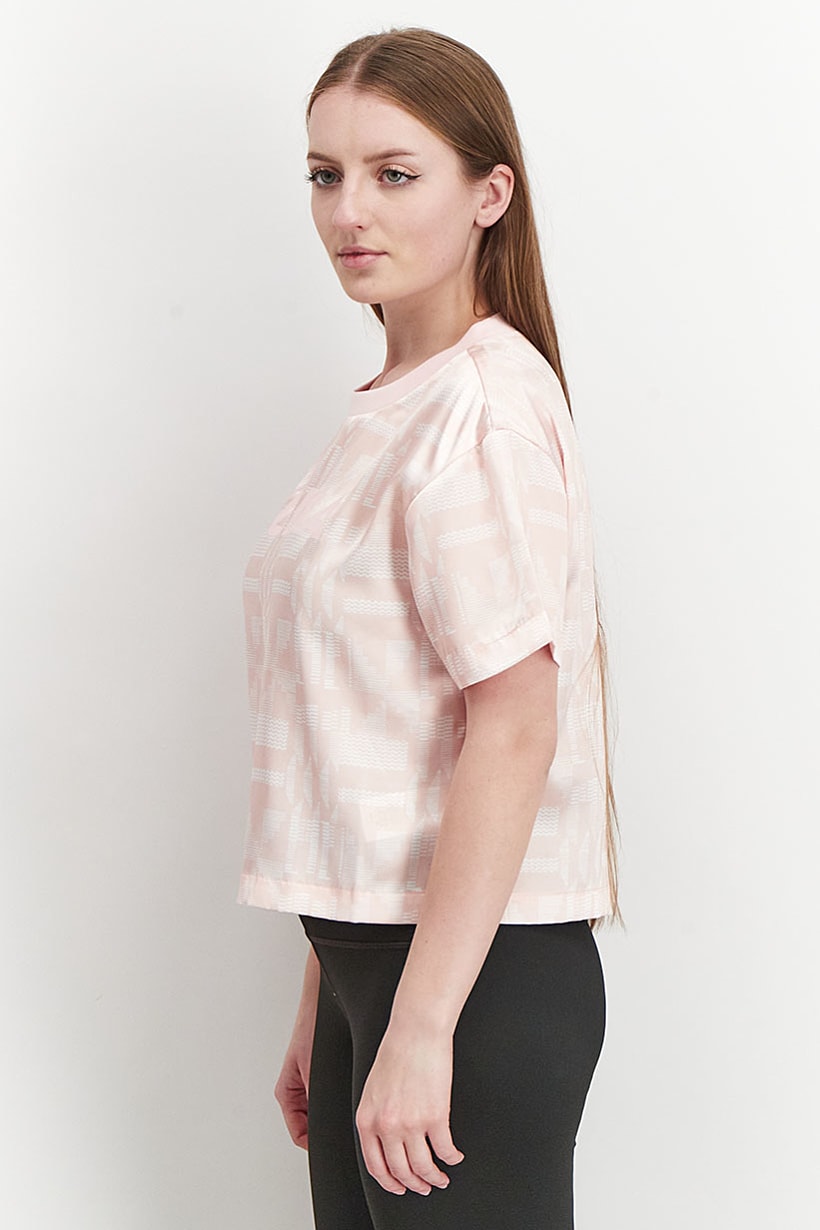 | descriptionOriginal | Care : Machine washable, Fit : Sportswear Fit, Size shown : US, Thickness : Light, Type of Sport : Training, Disclaimer : Product color may slightly vary due to photographic lighting sources or your monitor settings., Fabrics : 100% Polyester, Occasion : Sport, Pattern & Print : Brand Logo, Sportswear Type : T-Shirt, Color Family : Pink, |