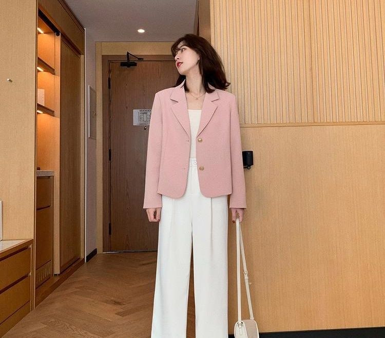 | nameOriginal | Pink Short Suit Jacket Women's Casual All-match 2024 New Spring and Autumn Clothing Korean Style Design Sense Suit for Small Men |