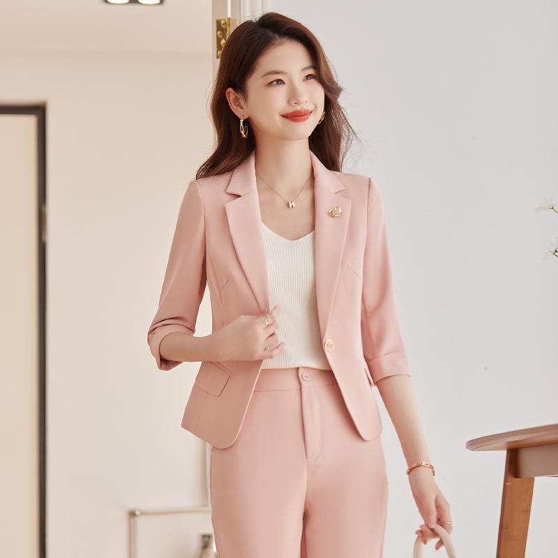 Pink Short Suit Women’s 2023 Summer Thin Small Professional Wear Elegant Goddess Style Casual Suit