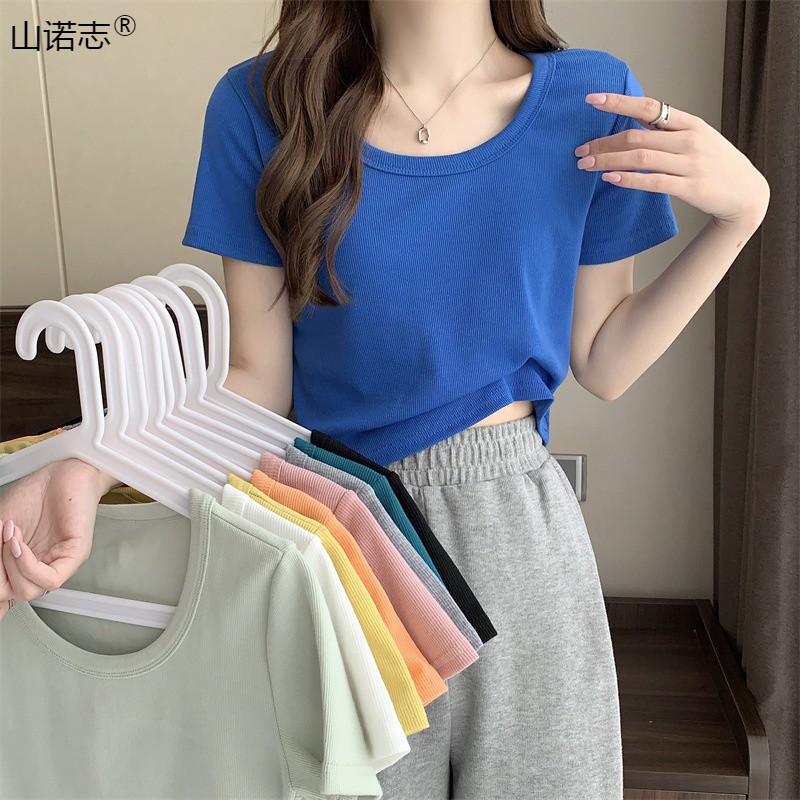 | nameOriginal | Pink Shoulder Short-sleeved T-shirt Women's Ins Trendy 2024 Summer New Sweet and Hot Style Slim-fit Short Hair |