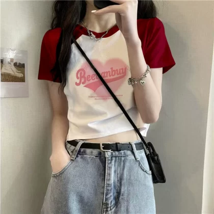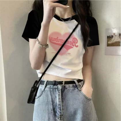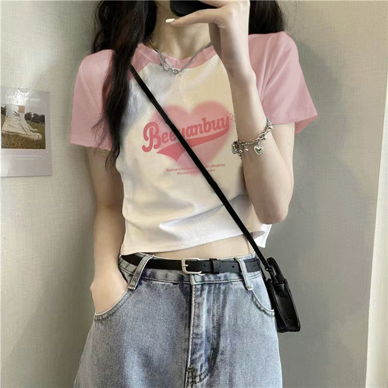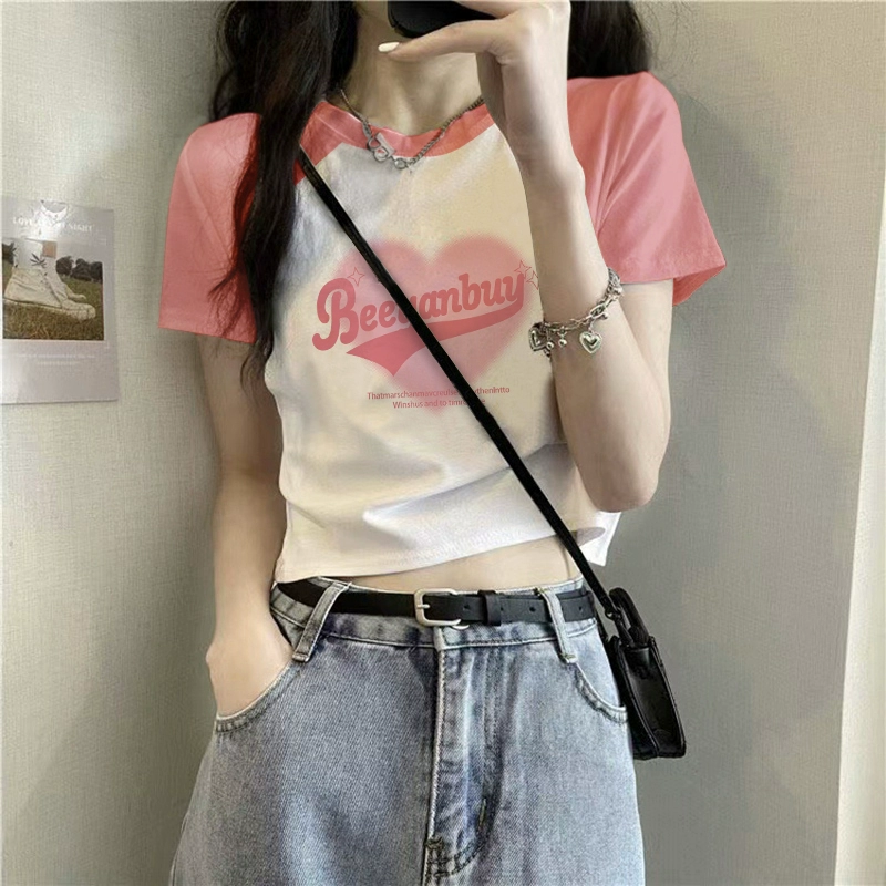 | nameOriginal | Pink shoulder summer sweet and cool top short-sleeved T-shirt |