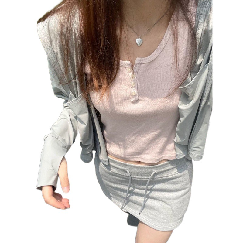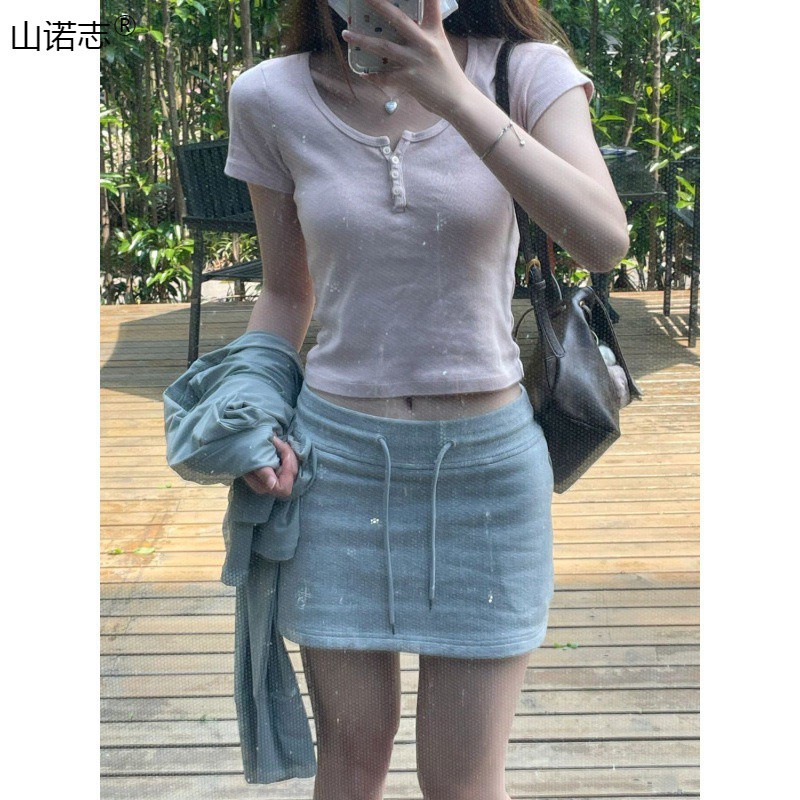 | nameOriginal | Pink Shoulder U-Neck Short-Sleeved Women's Small Chic Slim-Fit Slimming Short Sweet Spice Girl T-Shirt Top for Summer Hair |