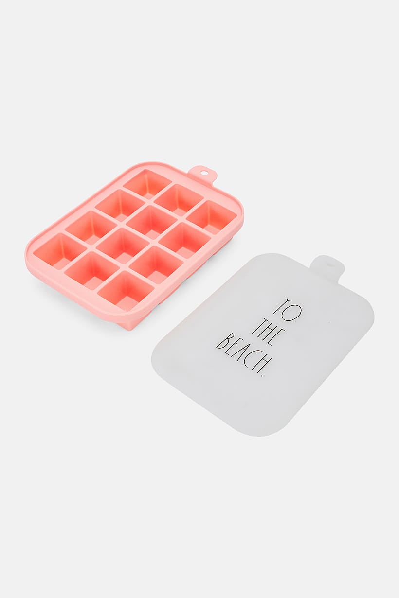 Pink Silicone Ice Tray with Lid, 12 Cubes.