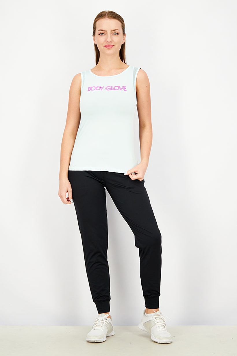 This women’s performance fit training top is machine washable and made with a light, 90% polyester and 10% spandex fabric. The sleeveless top features a scoop neckline and straight hem, with a turquoise color and brand logo print. Please note that the product color may vary slightly due to photographic lighting or monitor settings. The top is ideal for athletic activities and has a pullover closure. The size shown is international.