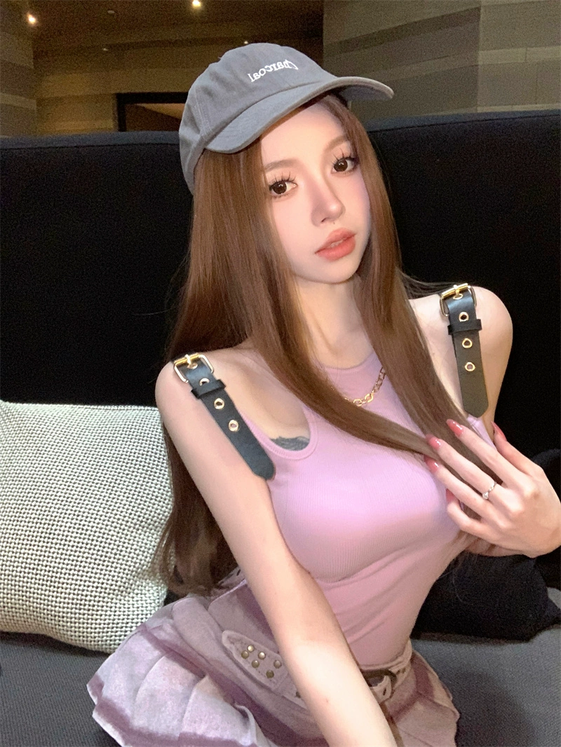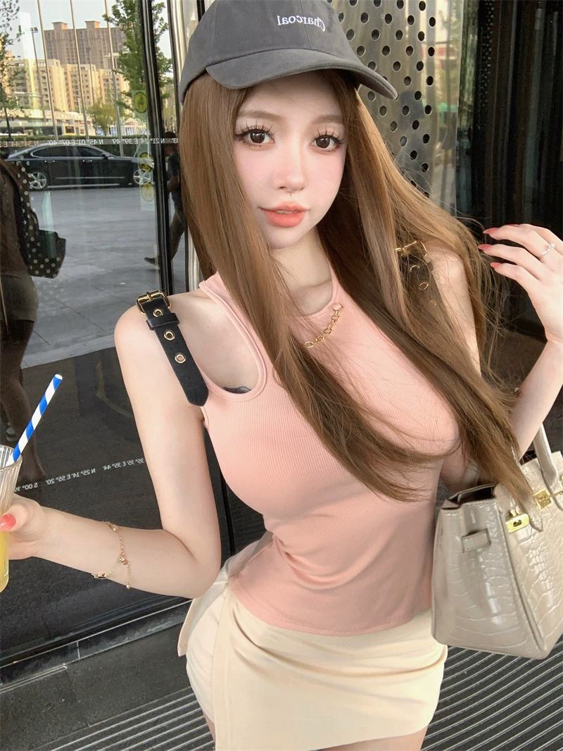 | nameOriginal | Pink slim fit hollow sleeveless design camisole |