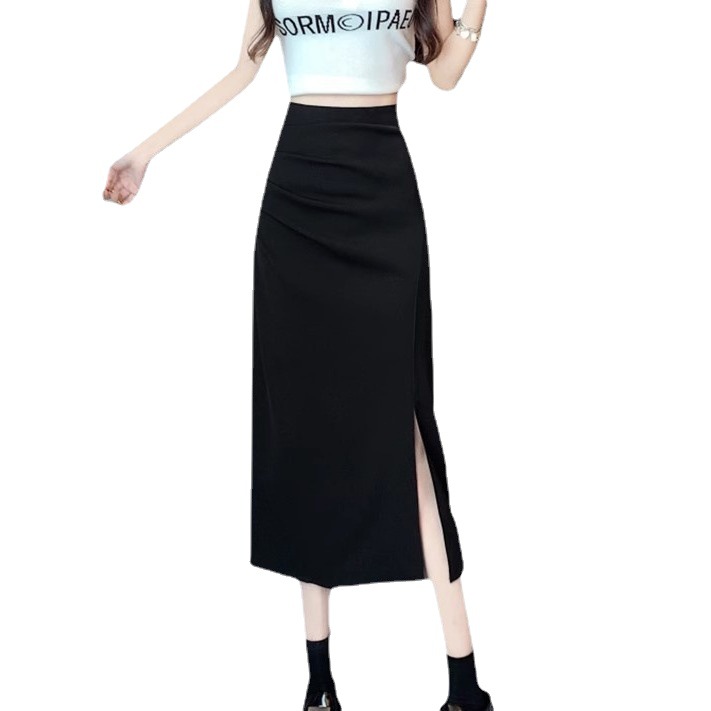 Pink split sheath skirt women's summer hot girl slim A- line skirt design pleated high waist midi skirt