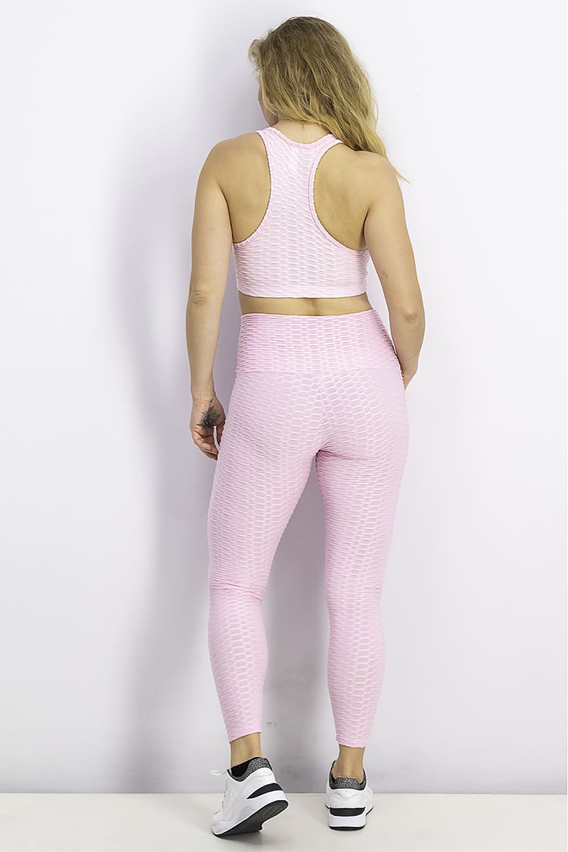 Pink Sport Bra and Leggings Set with Padded Bra and Pull-On Design for Women.