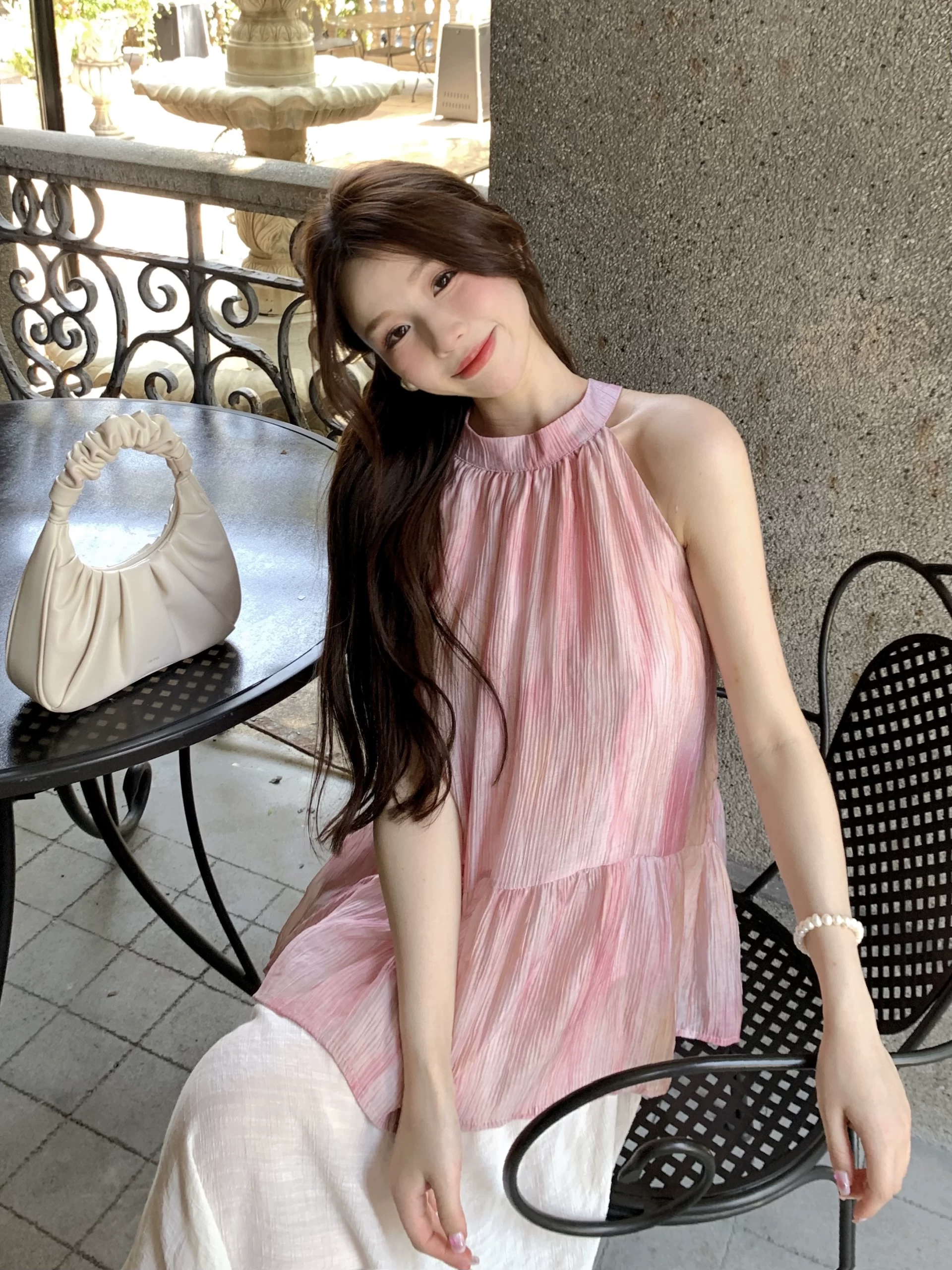 | nameOriginal | Pink strappy dress spring loose halter neck |