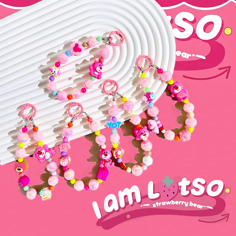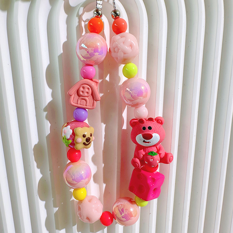 | nameOriginal | Pink strawberry bear mobile phone pendant DIY mobile phone chain mobile phone back clip sling rope doll beaded bag hanging key chain |