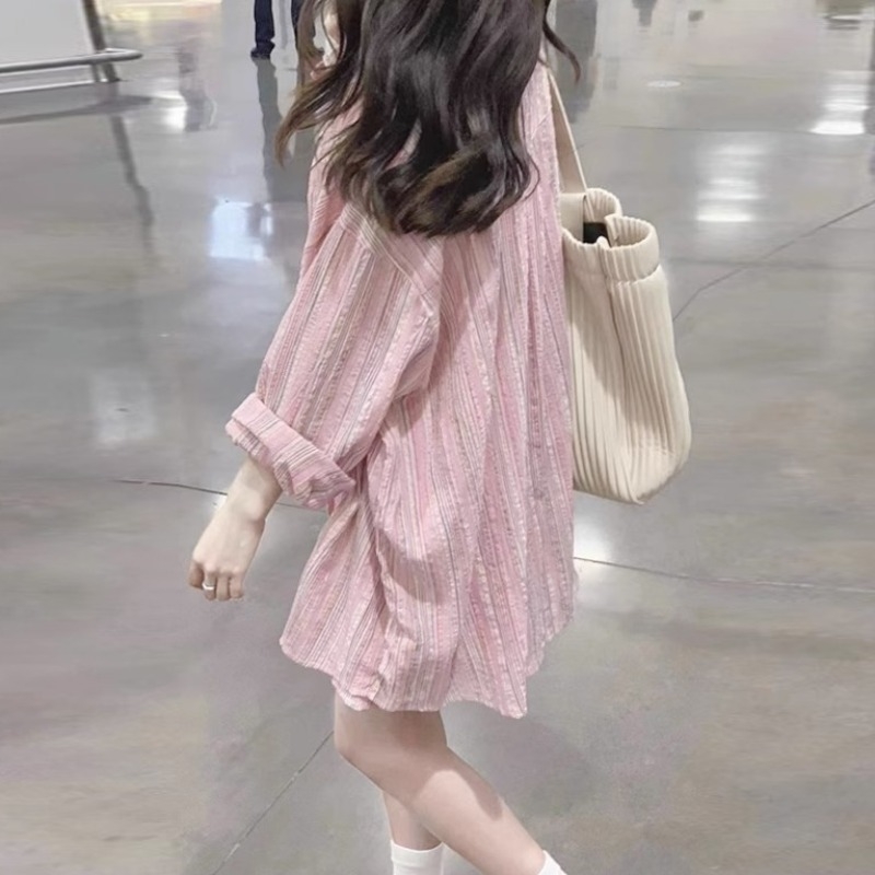 Pink Striped Shirt Coat Women’s Spring and Autumn 2024 New Early Spring Clothing Design Sense Niche Shirt Chic Top