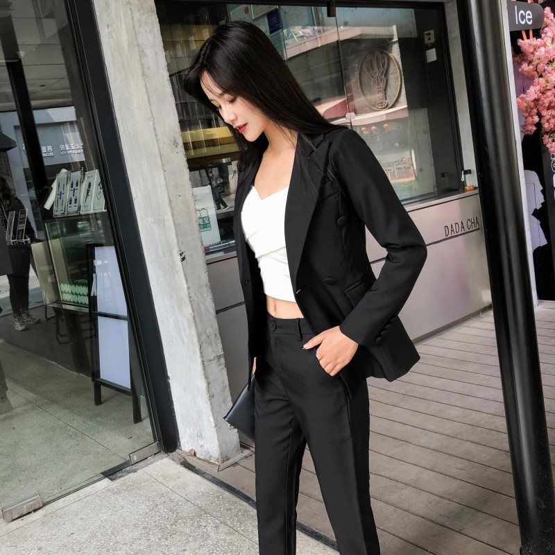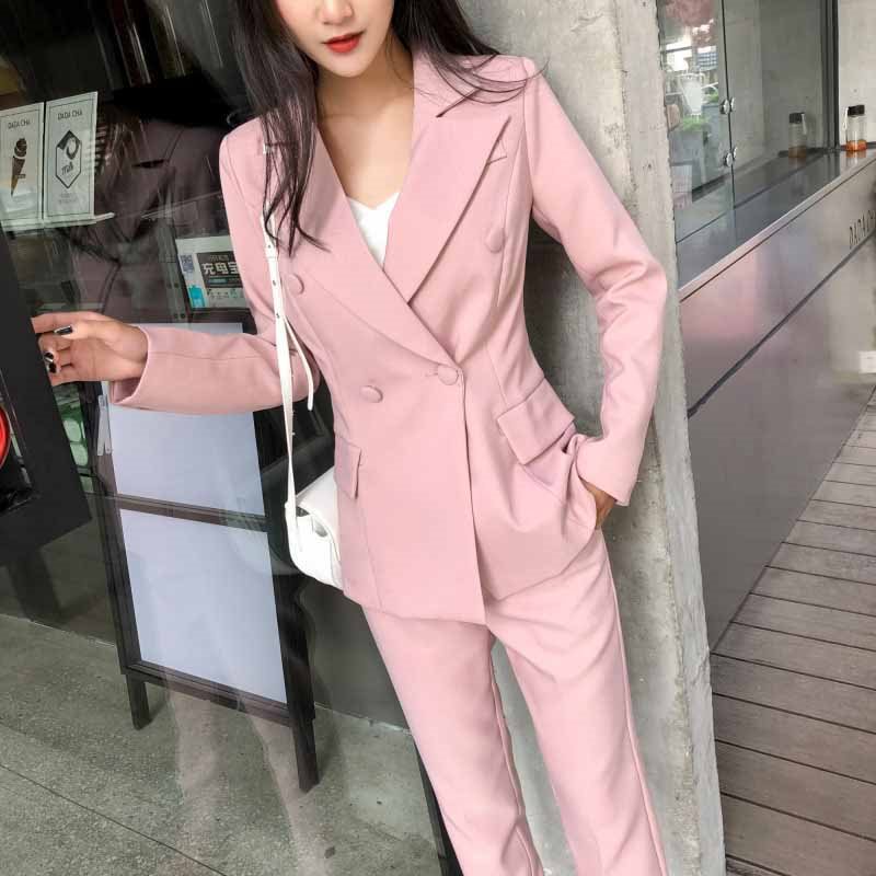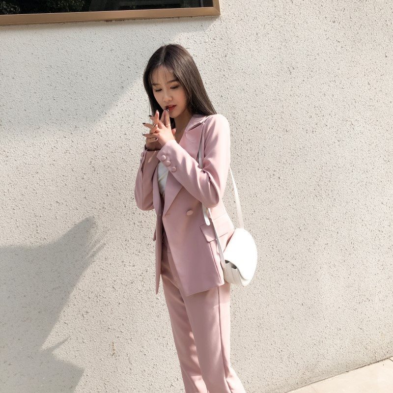 Pink Suit Set Women’s 2024 Fashion Spring and Autumn New Fashion Slim-fit Small Suit Jacket Cropped Pants Business Wear