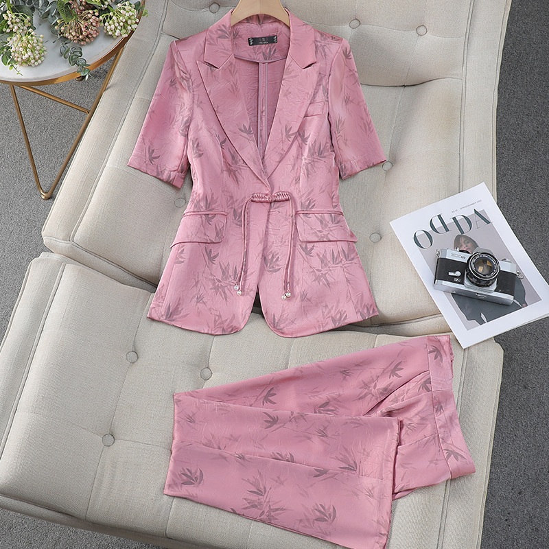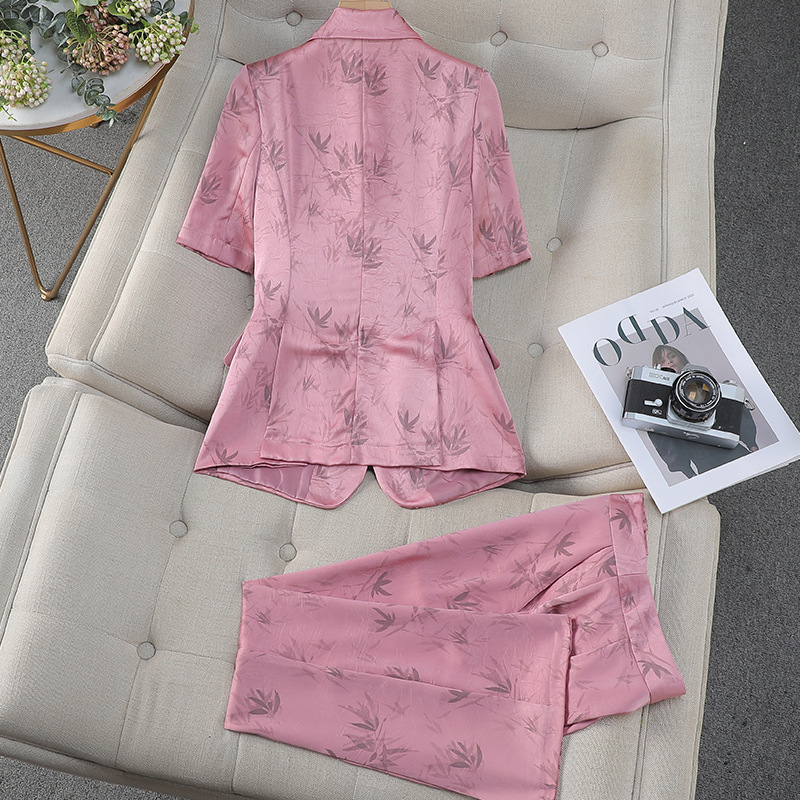 | nameOriginal | Pink Suit suit Women's High-end Sense Summer 2024 New Style Elegant Jacket Short-sleeved Suit Wide-leg Pants Two-piece Set |
