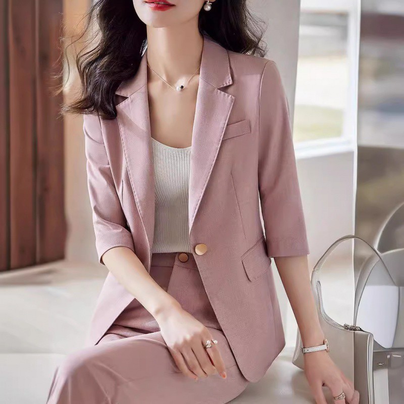 Pink Suit suit Women’s Small Summer Thin Sense Business Wear Fashion Casual Suit Dress