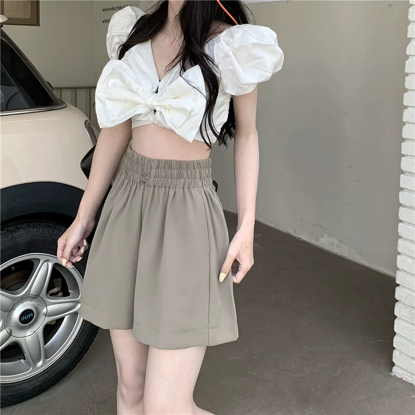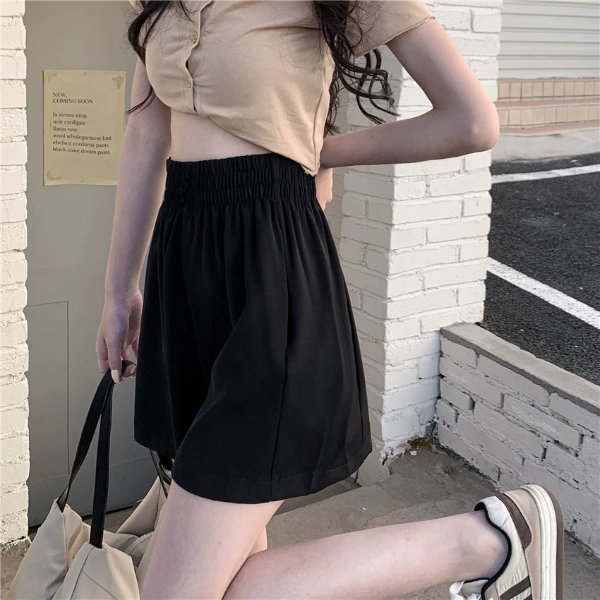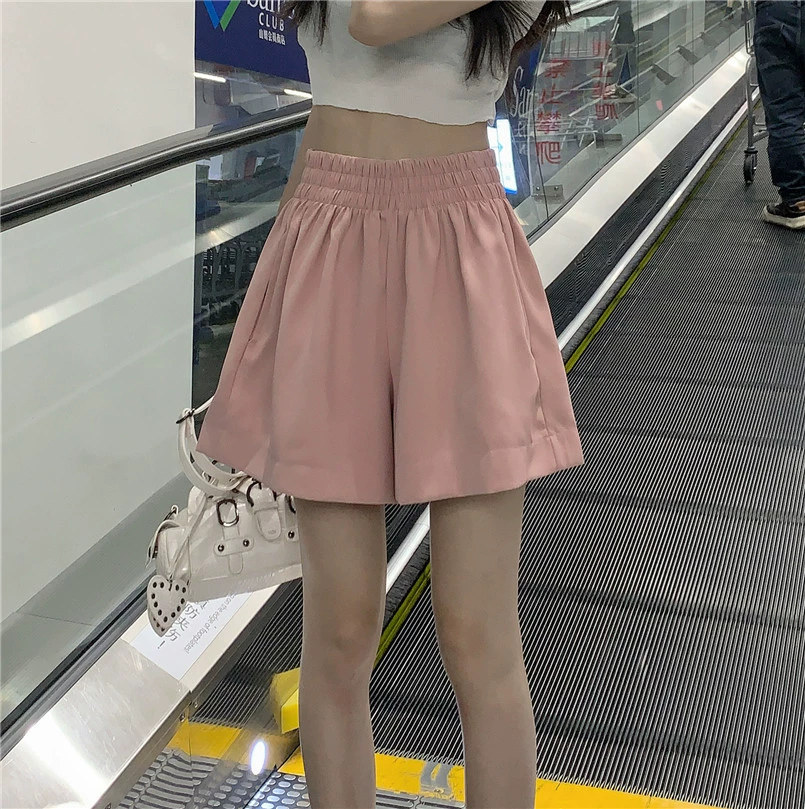 Pink summer outerwear wide-leg high-waist casual shorts