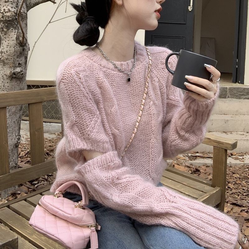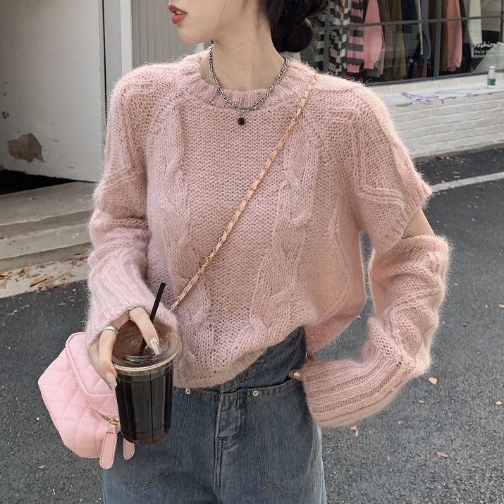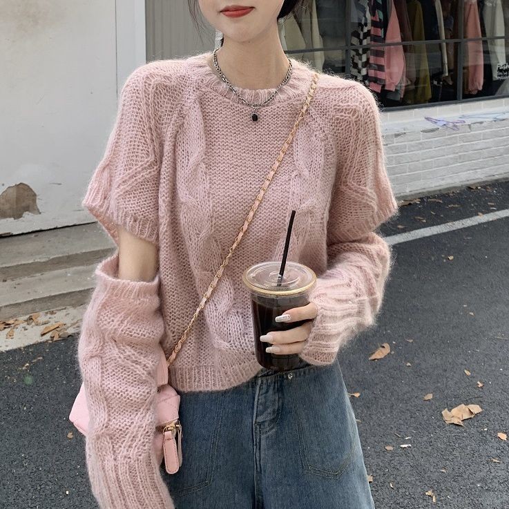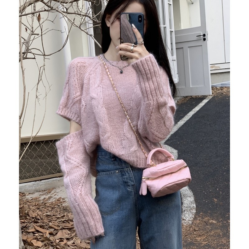 | nameOriginal | Pink sweater women's spring/autumn/winter 2023 new sleeve stitching sweater lazy style high-grade bottoming shirt top |